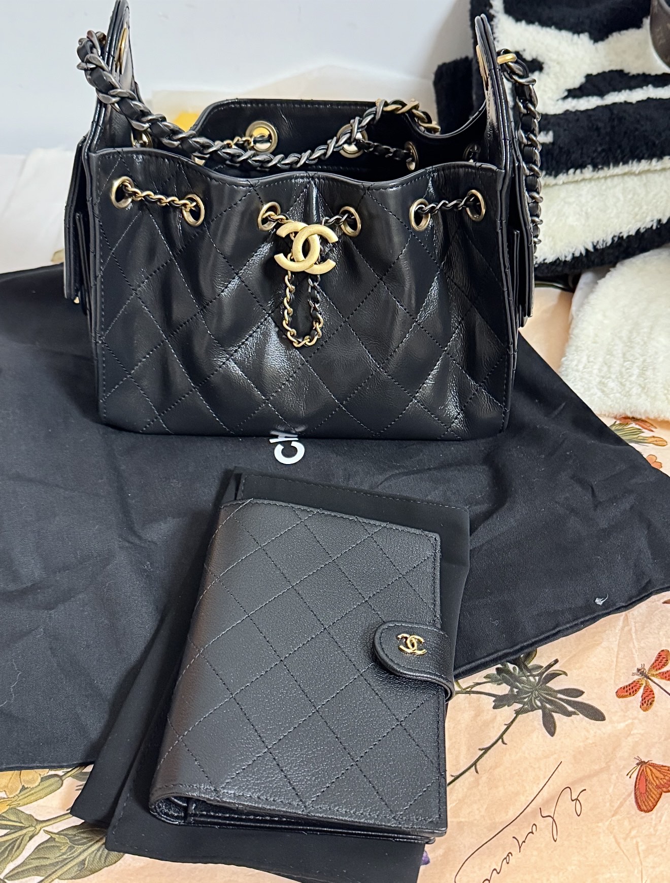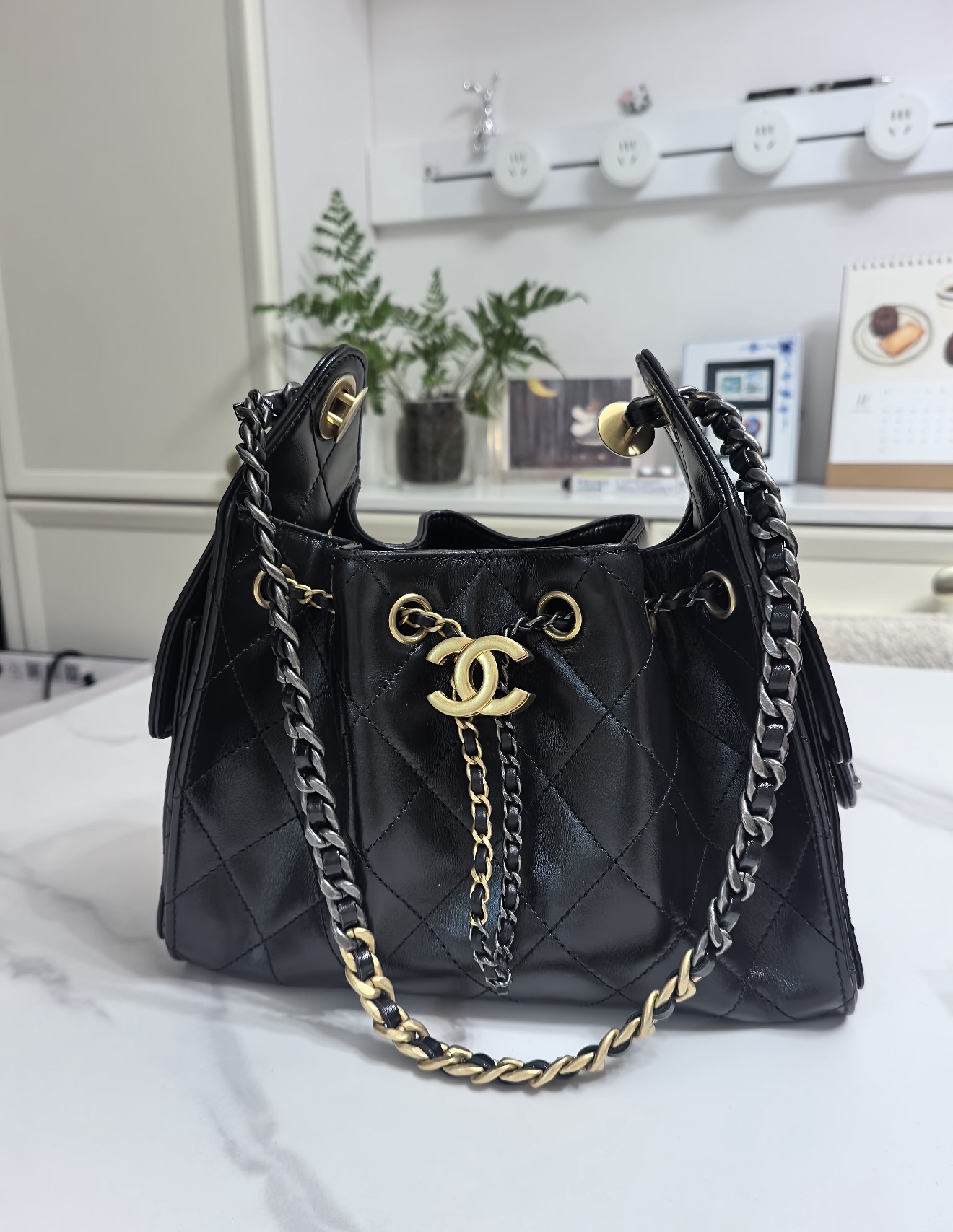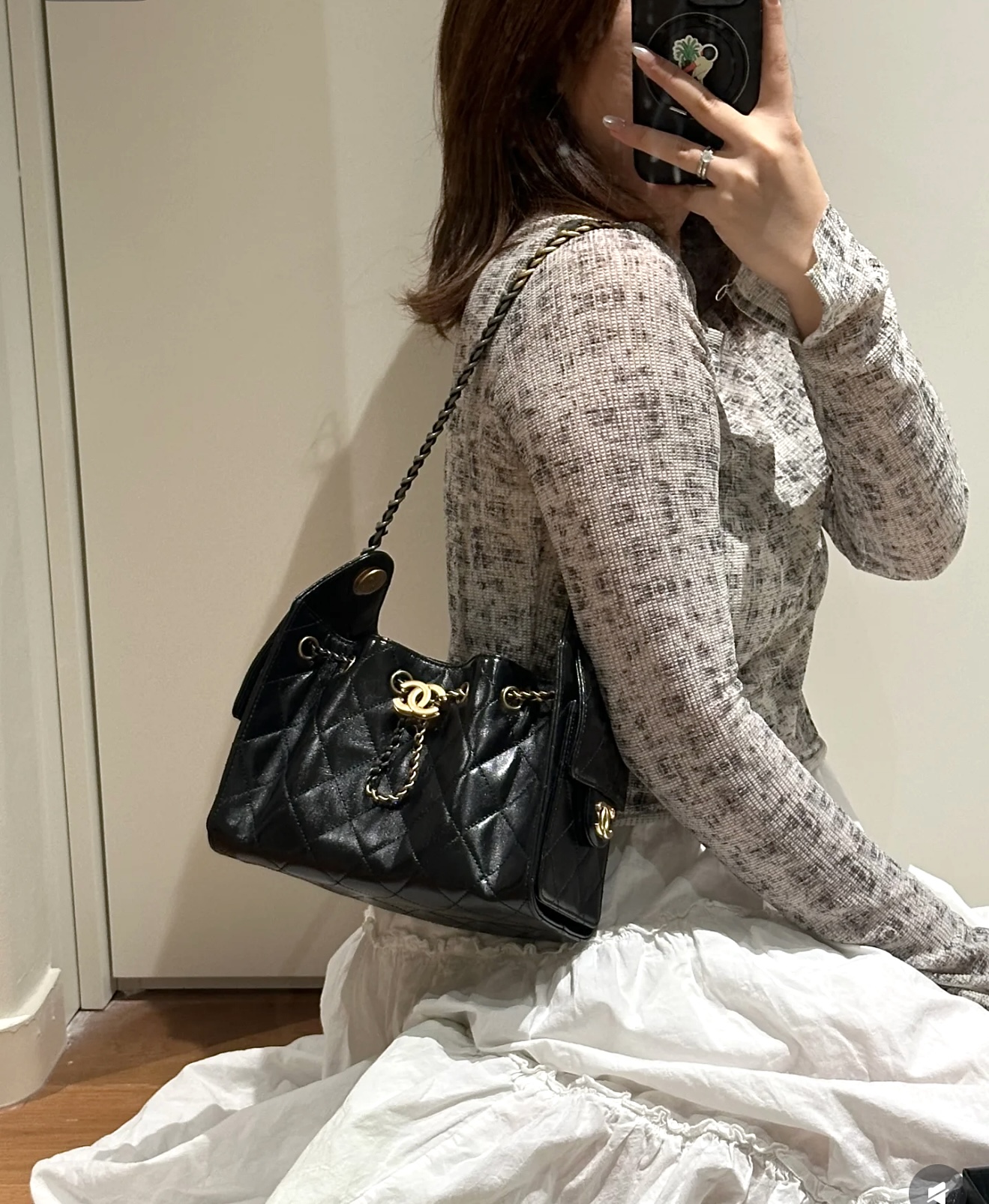 Chanel 22 AS3260 Small Bag Grey Calfskin Gold Hardware