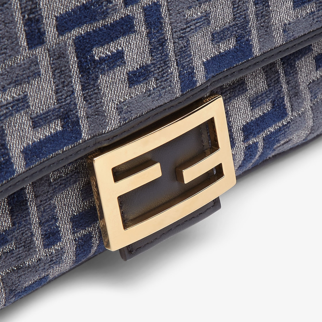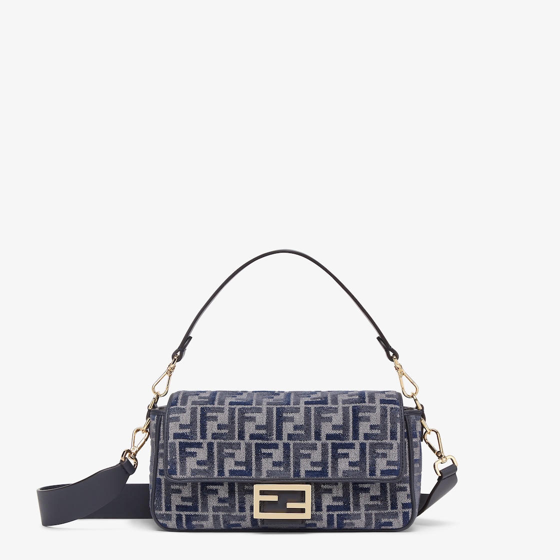 Made of chenille with the iconic FF motif in dark blue gradient tones, embellished with dark blue calfskin trim and decorated with an FF clasp.