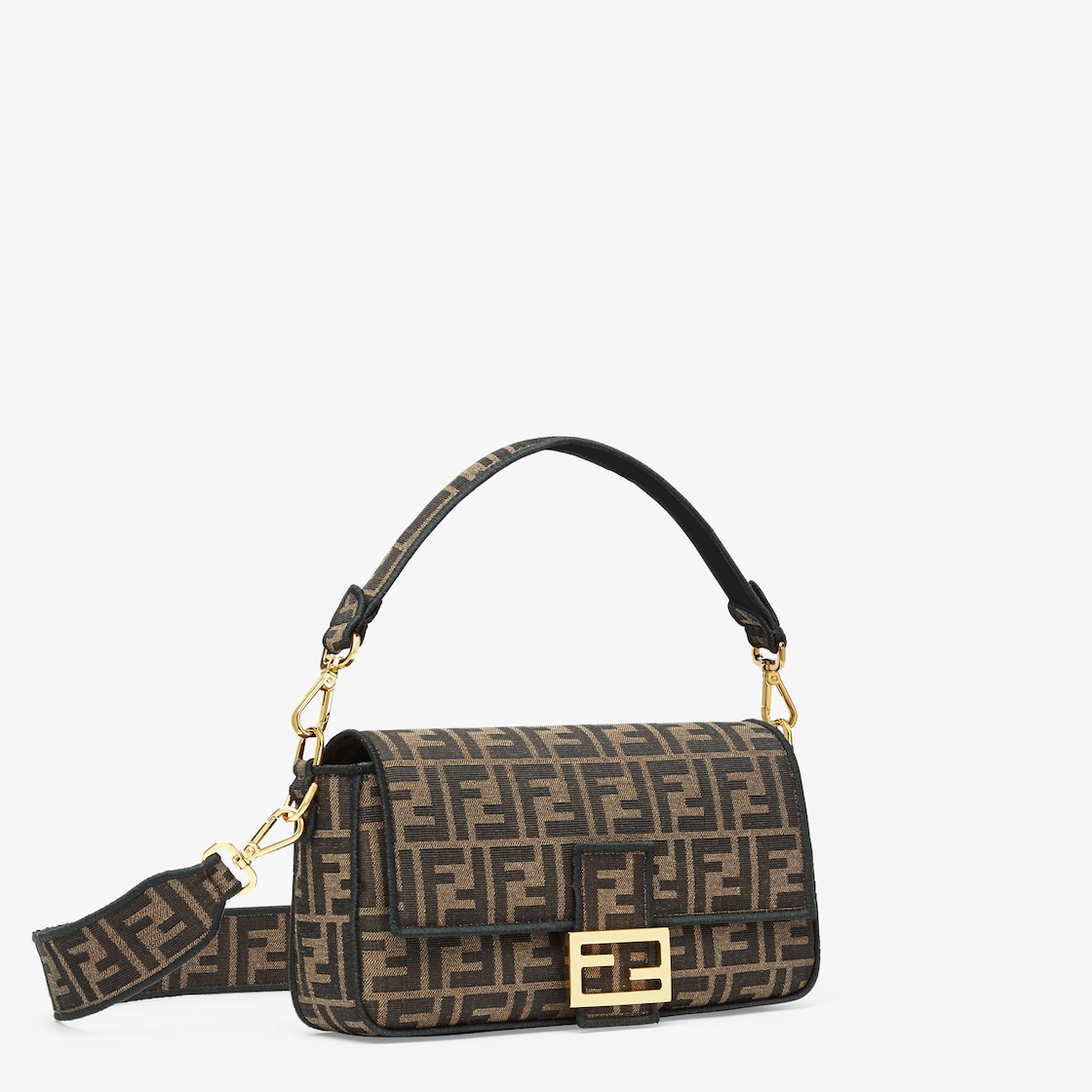 Made of jacquard fabric with the iconic FF motif in brown, decorated with an FF clasp and trimmed with black embroidery.