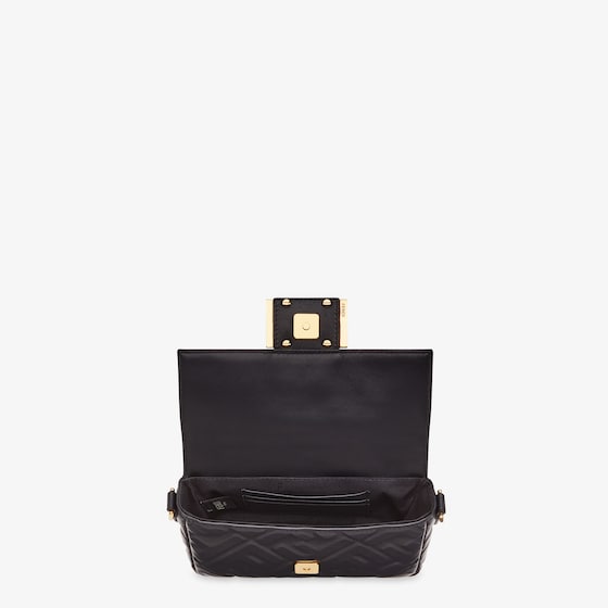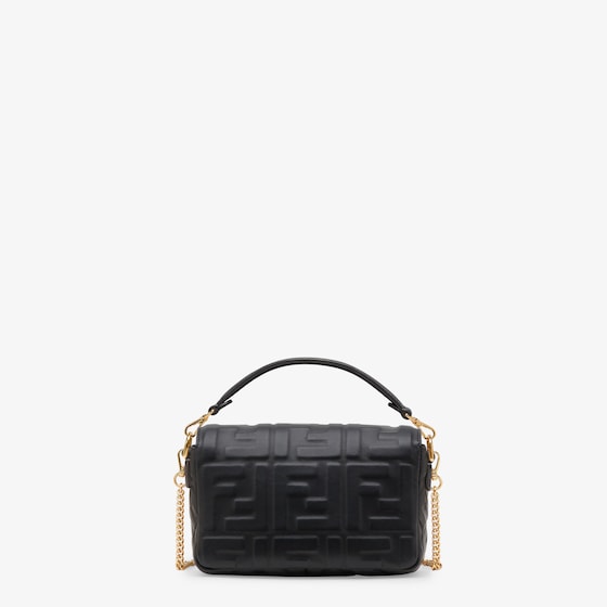 Small iconic Baguette bag made of soft, black nappa leather with a 3D-effect embossed iconic FF motif and embellished with an FF clasp.