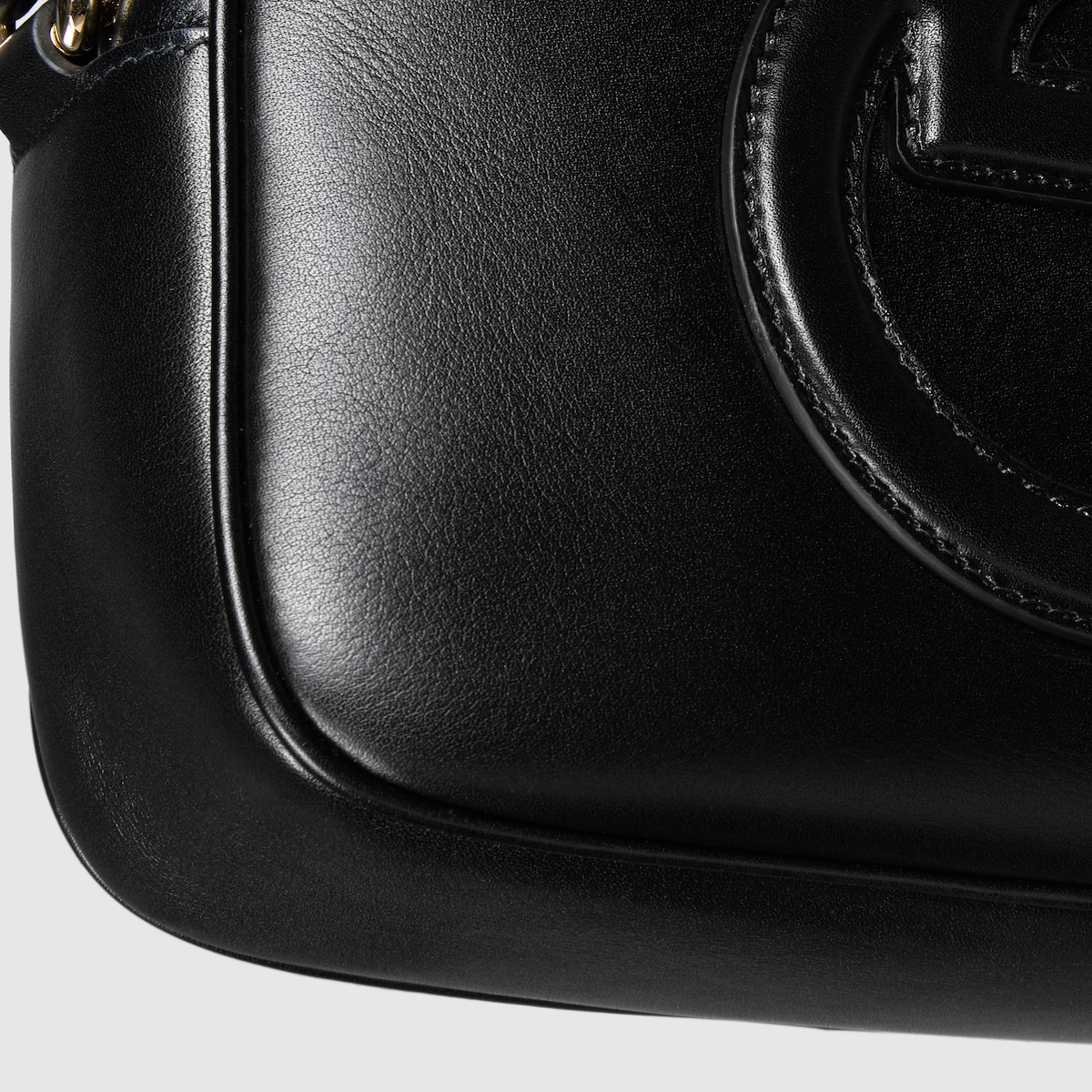 The new Gucci Blondie bag, whose distinctive logo first appeared in the House??s collections in the early 1970s, weaves together past and present in a fusion of nostalgia and modernity. This mini shoulder bag is crafted from black smooth leather, and can be worn crossbody with an adjustable leather strap.