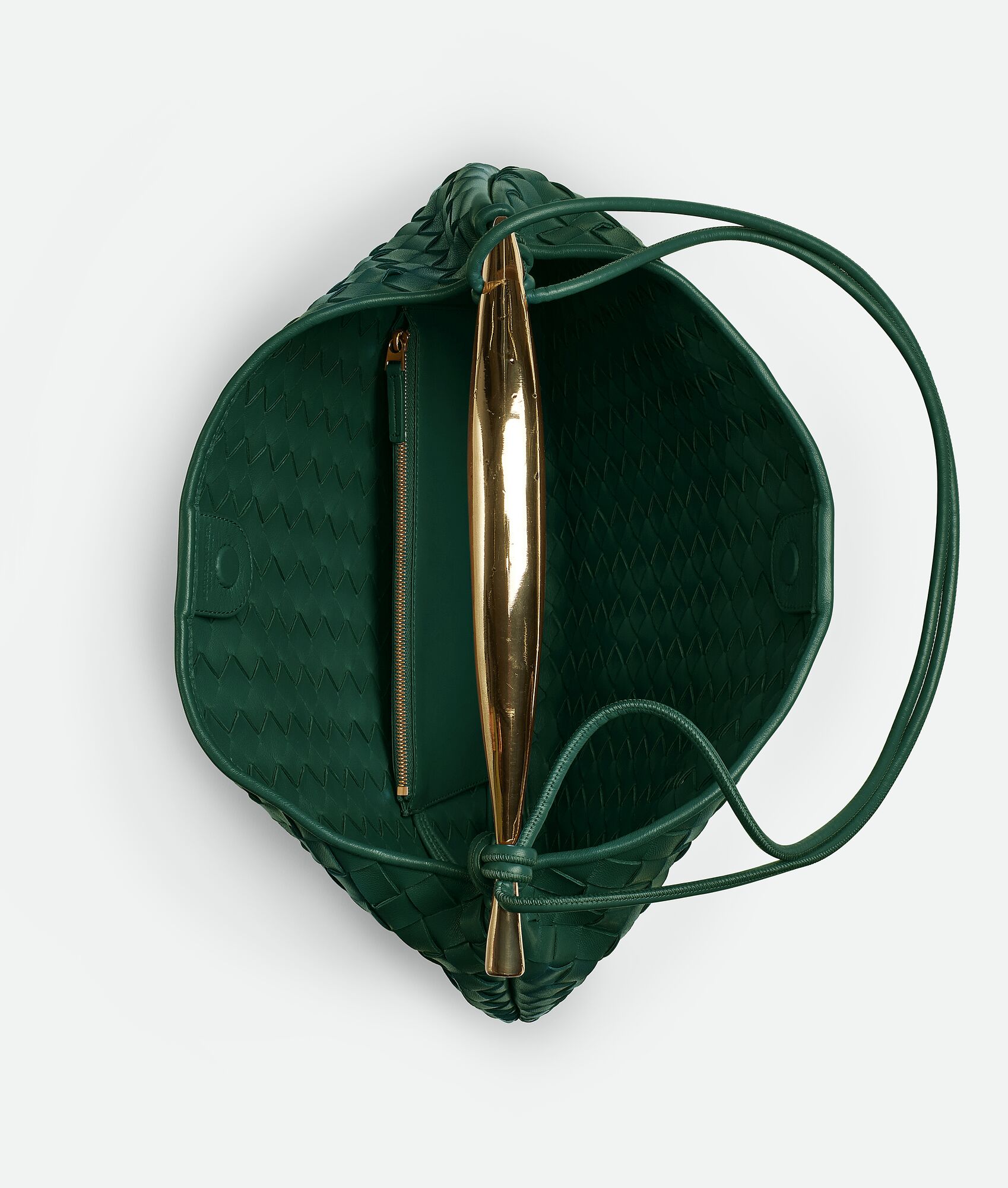 Large Intrecciato leather shoulder bag with metallic top handle and leather shoulder strap