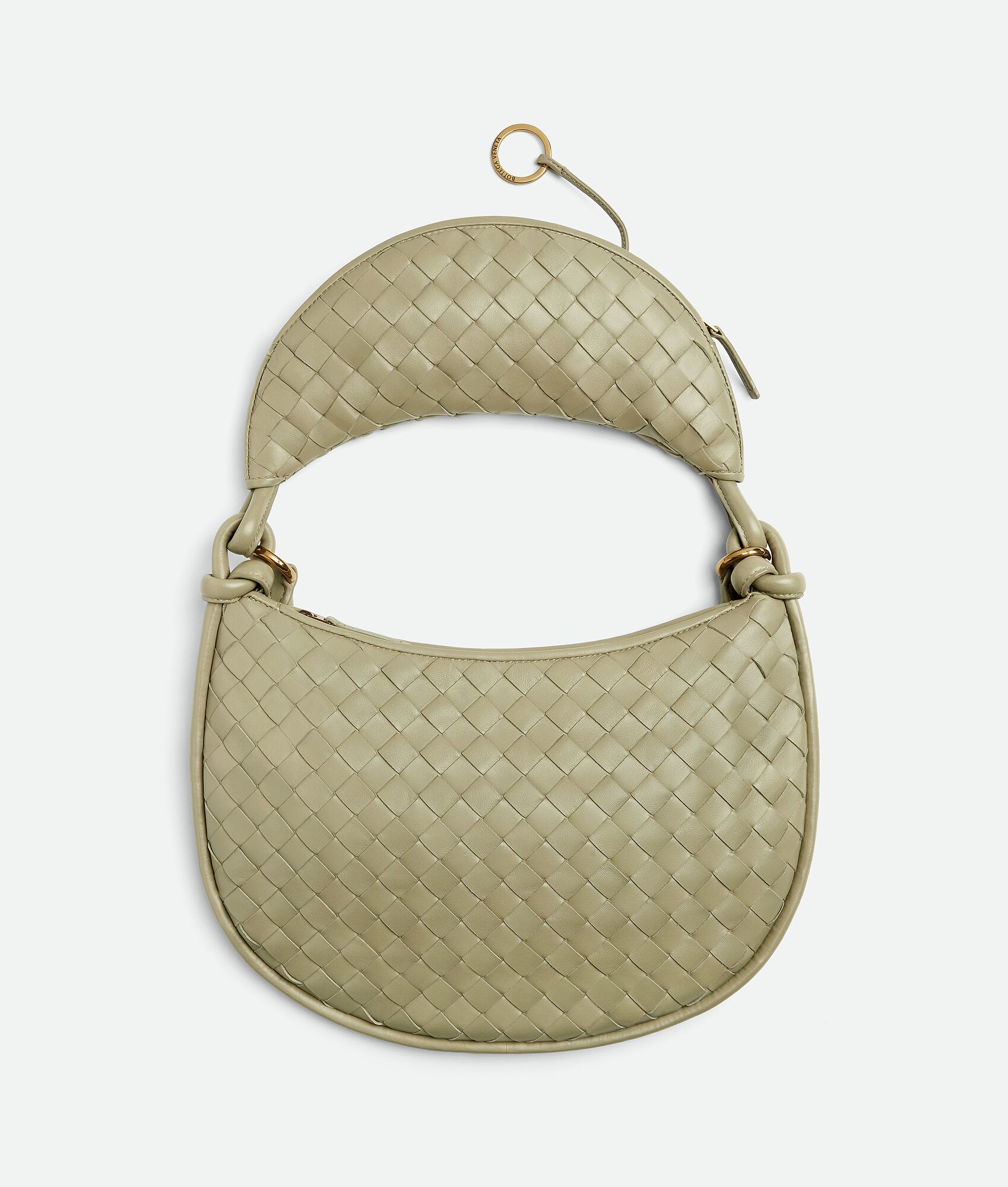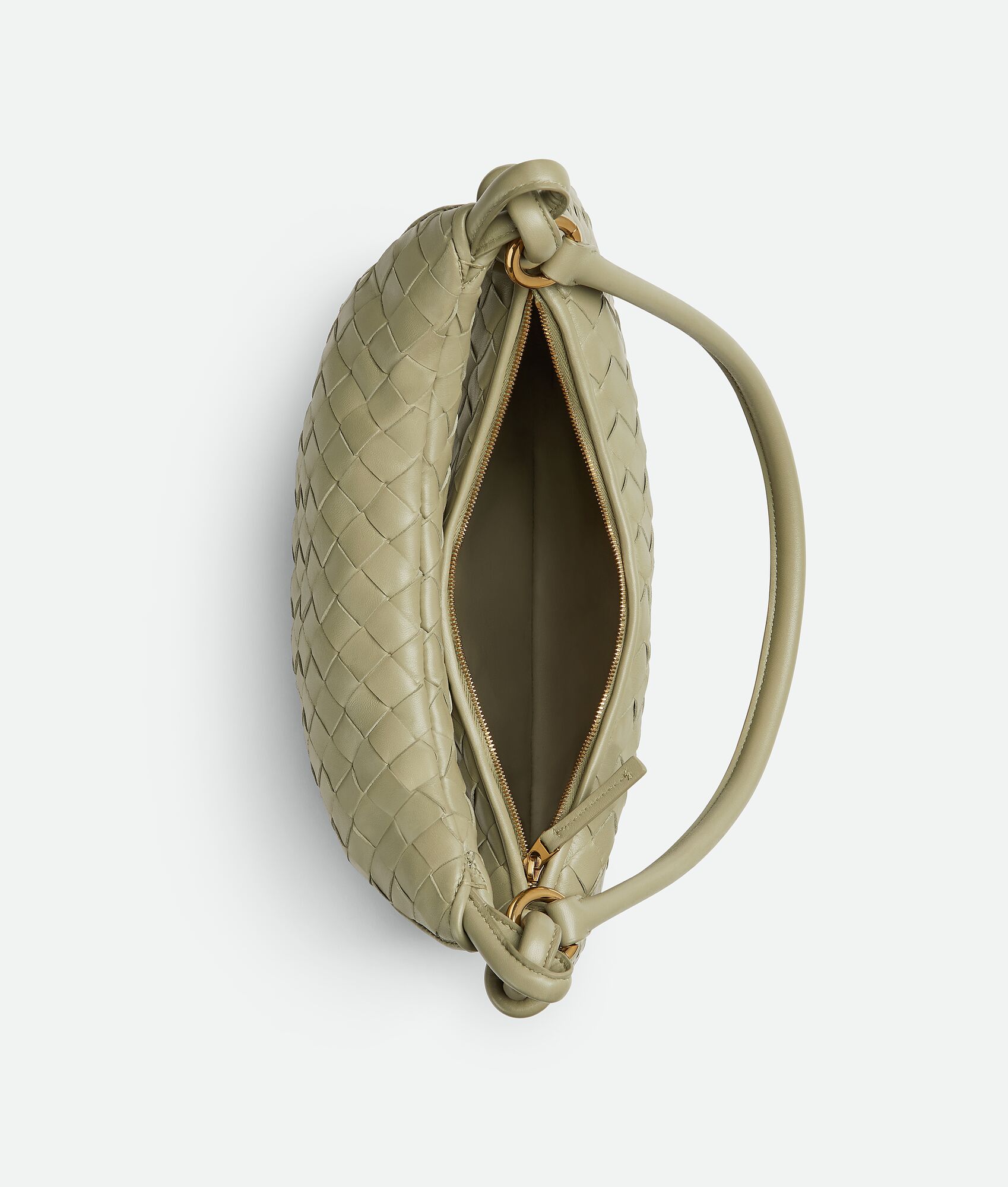 Additional half-moon zipped handle in intrecciato leather