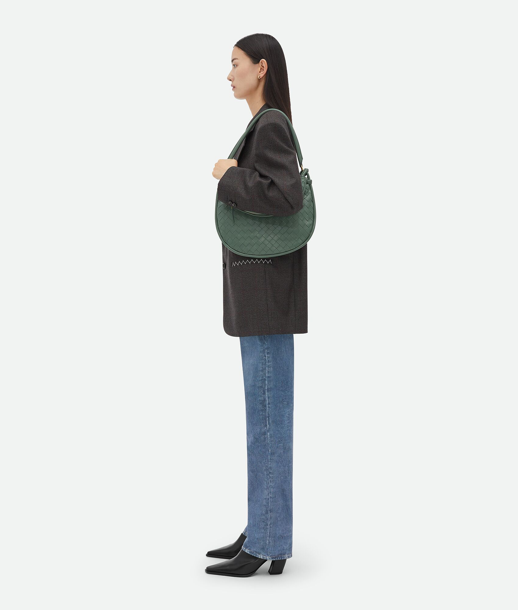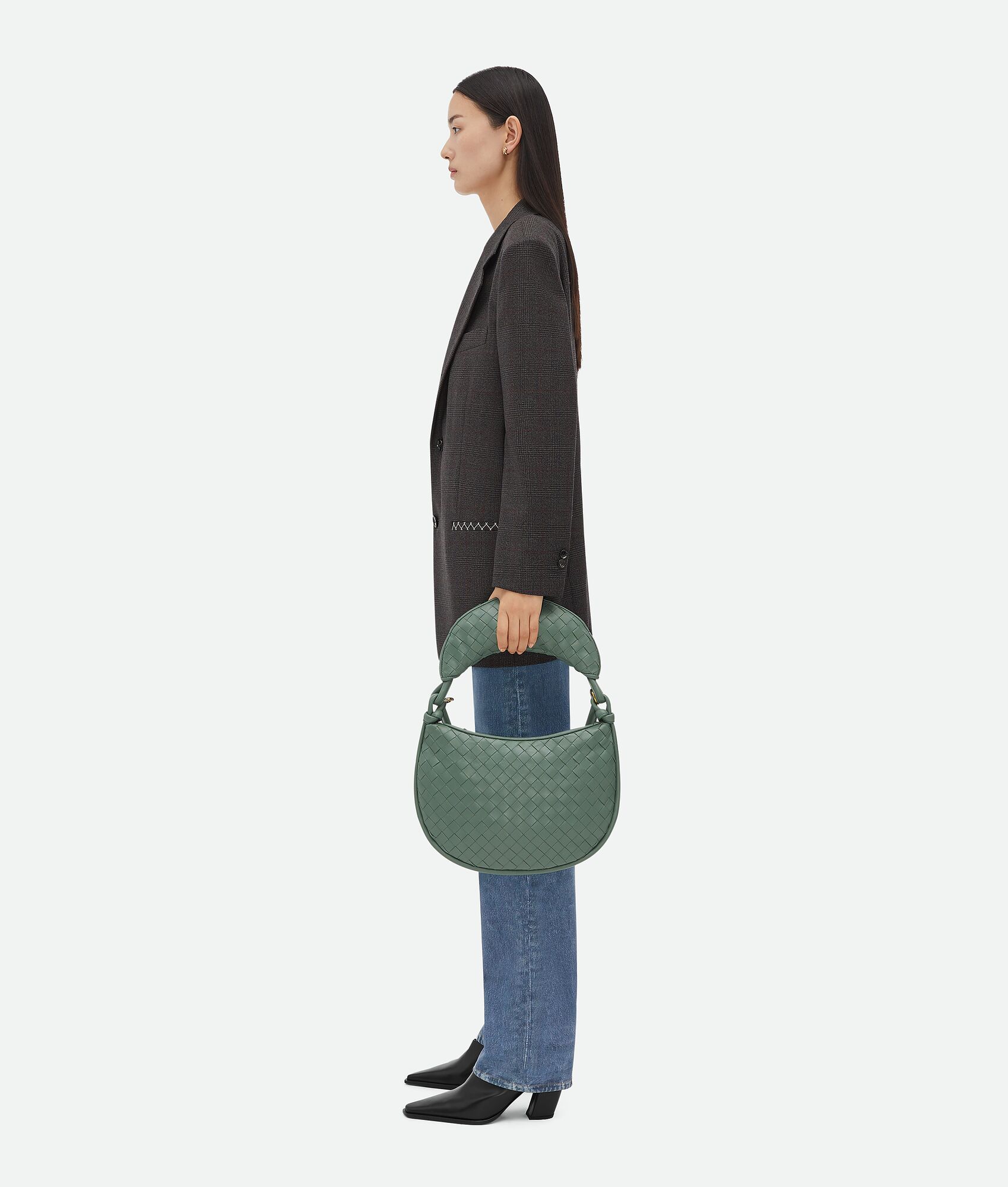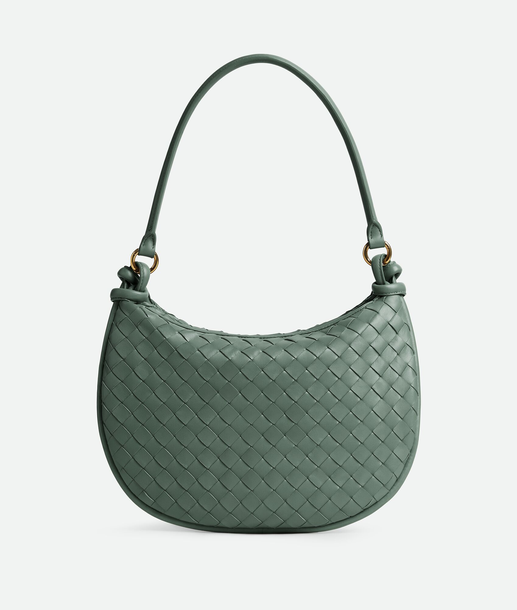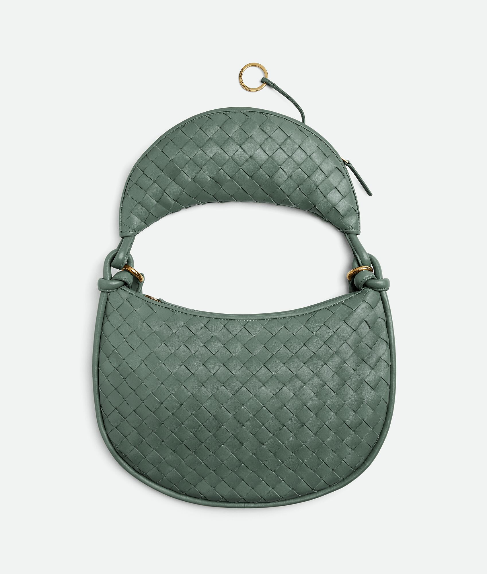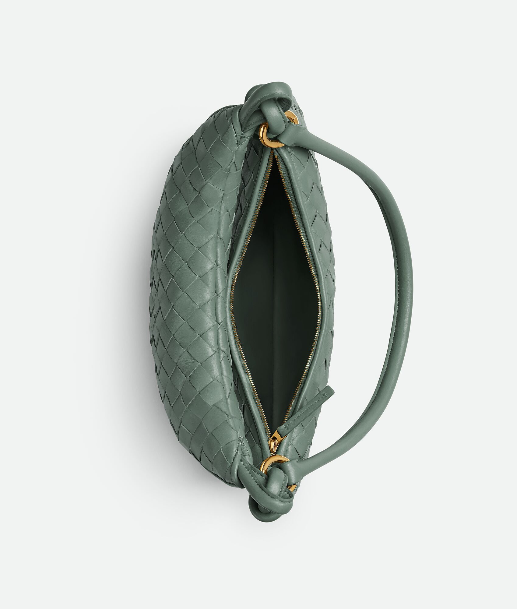 Additional half-moon zipped handle in intrecciato leather
