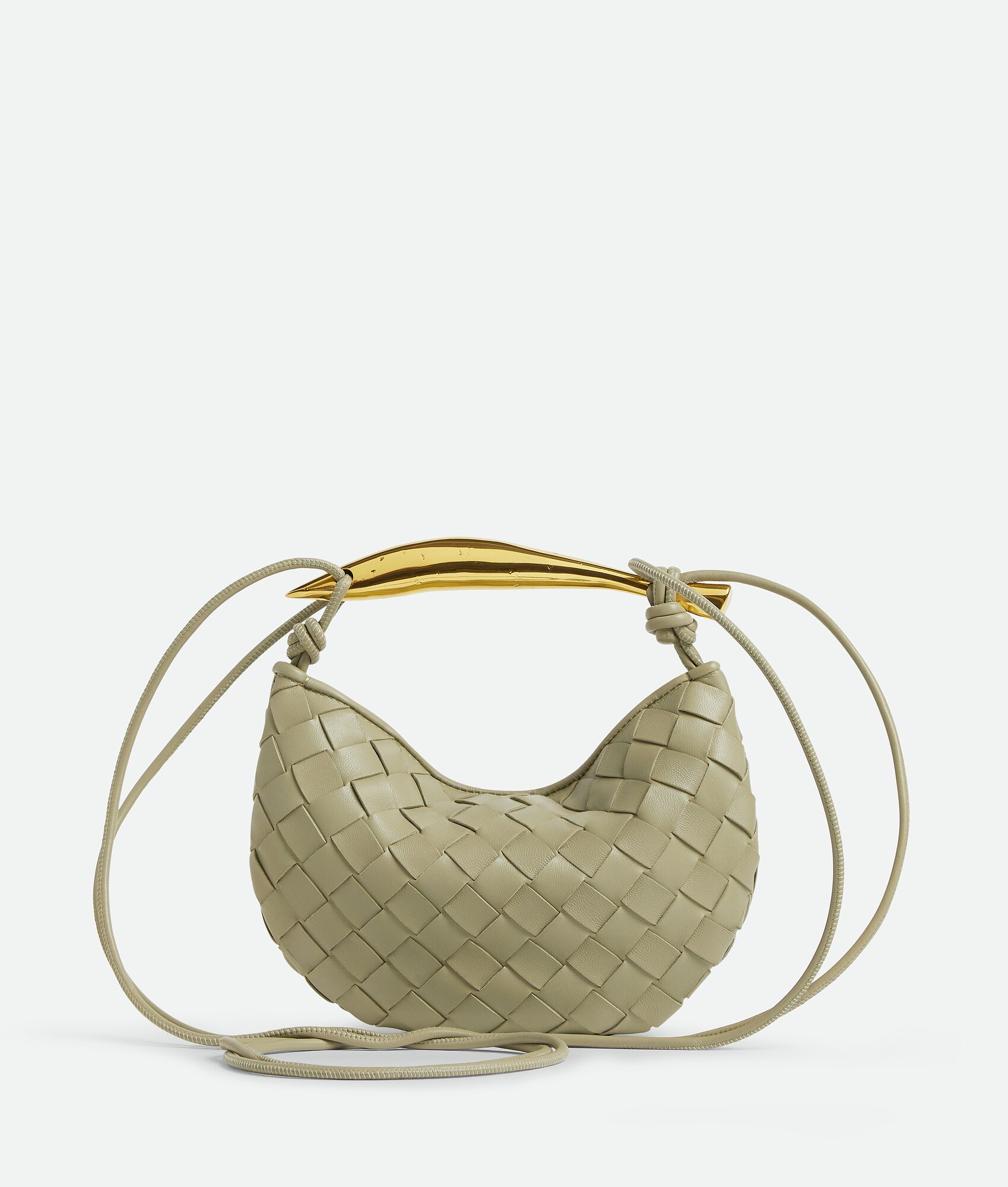 Mini Intrecciato leather cross-body bag with metallic top handle