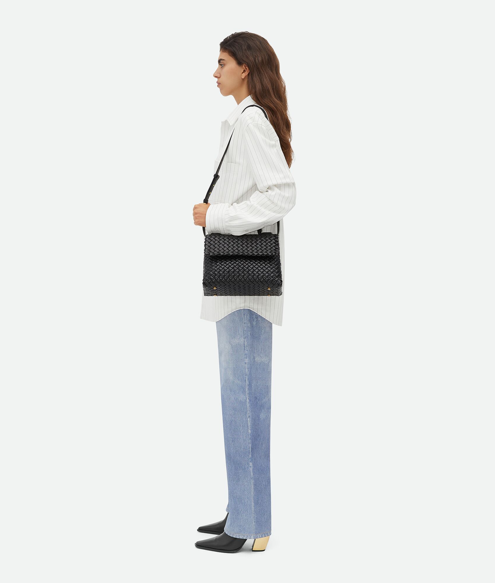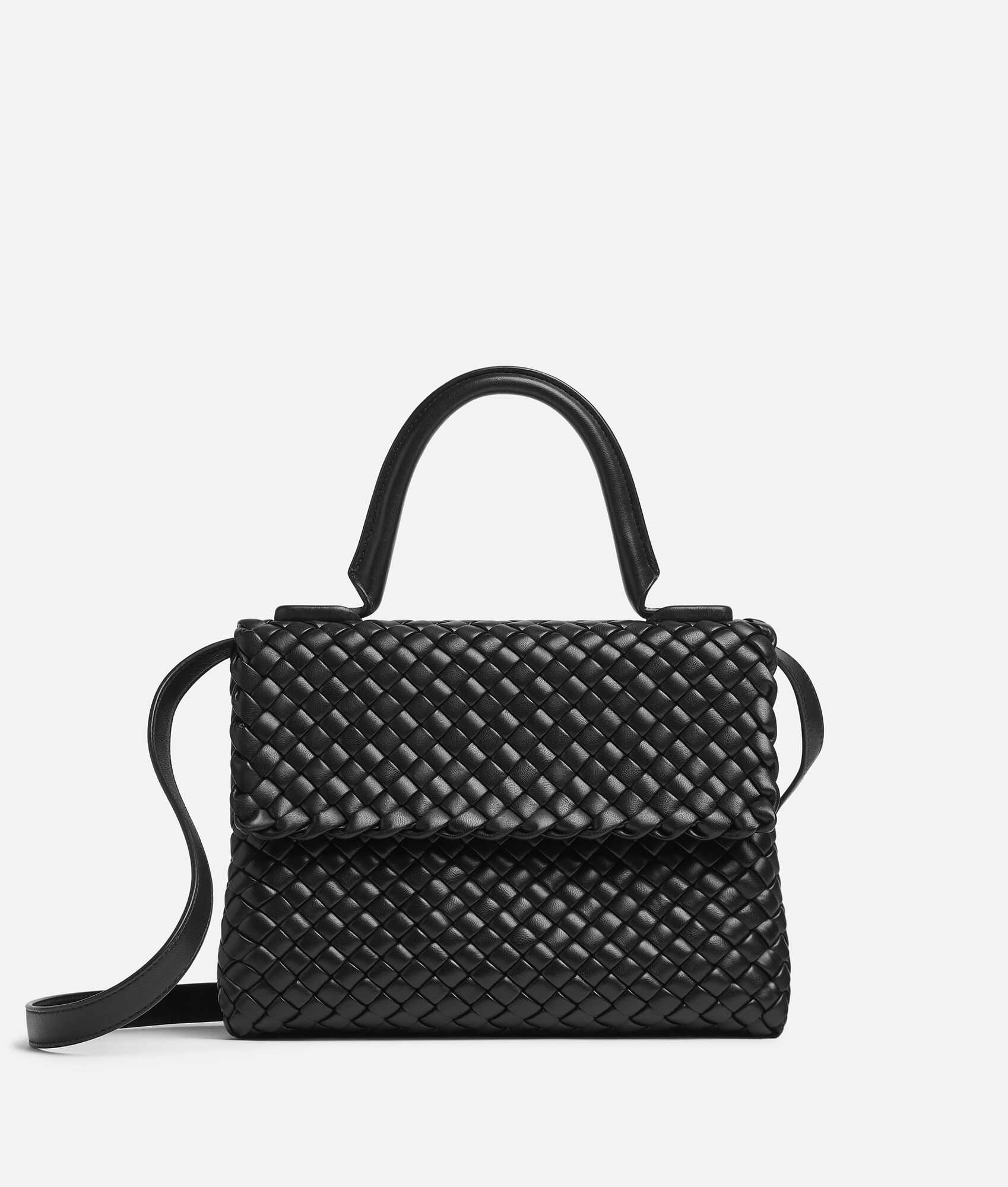 Small padded Intreccio leather top handle bag with detachable cross-body strap