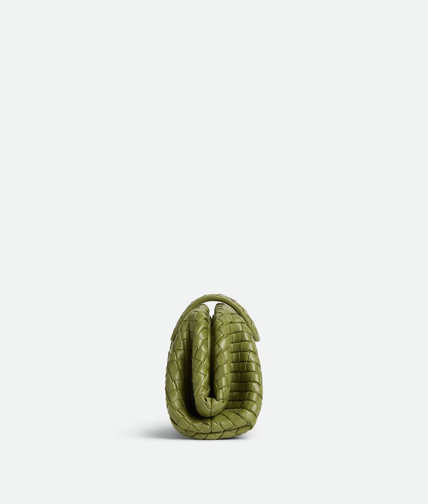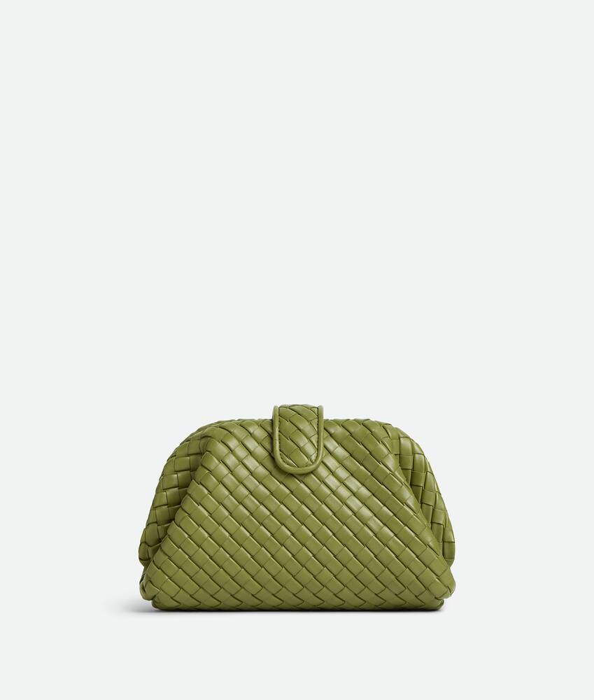 Small padded Intrecciato leather mini clutch with leather braided cross-body metal chain
