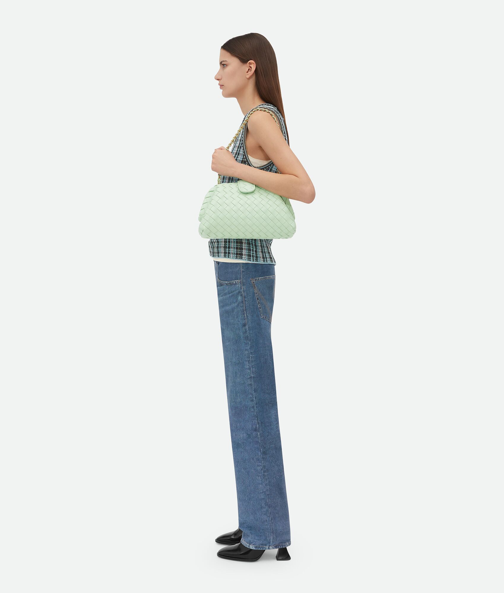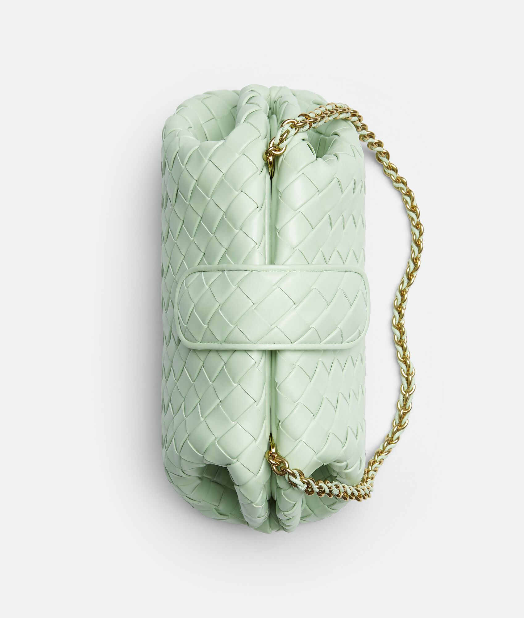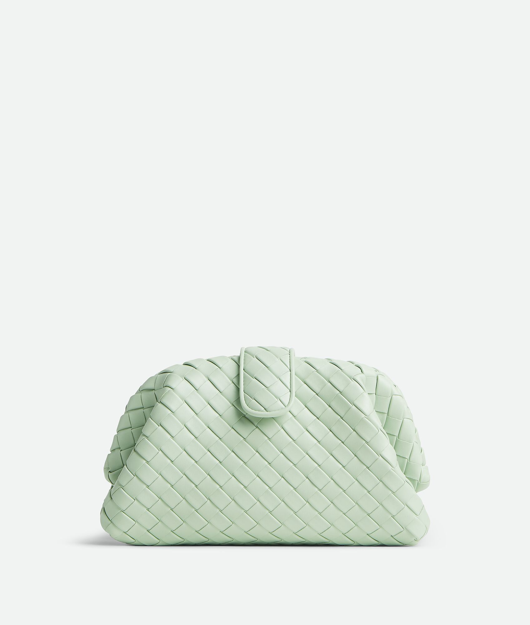 Padded Intrecciato leather teen clutch with leather braided metal chain