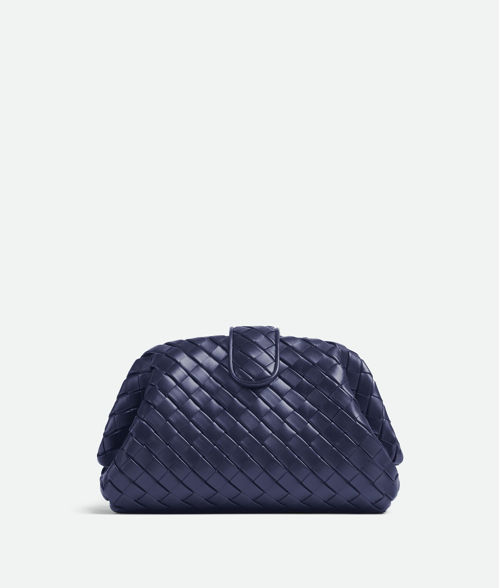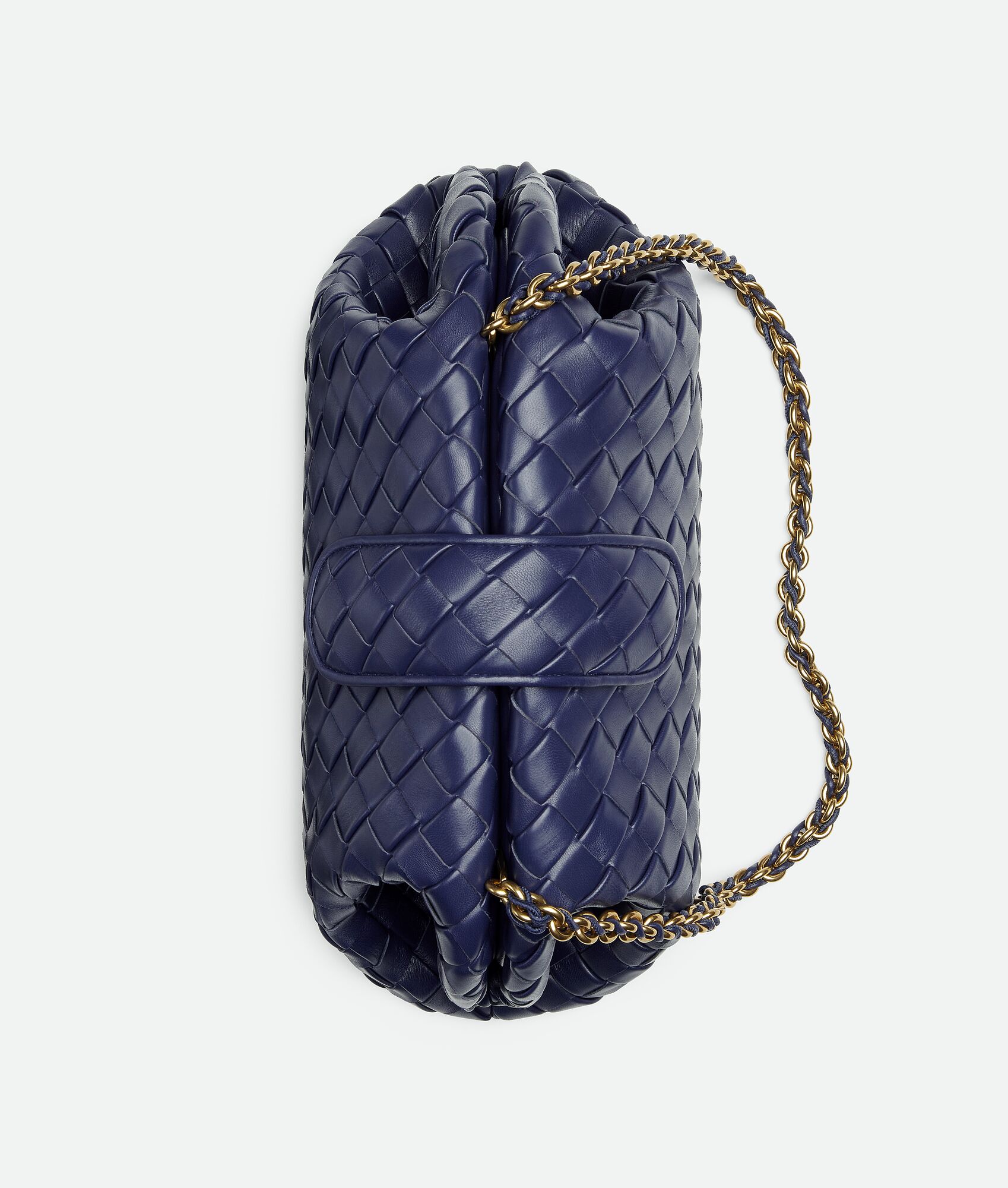 Padded Intrecciato leather teen clutch with leather braided metal chain