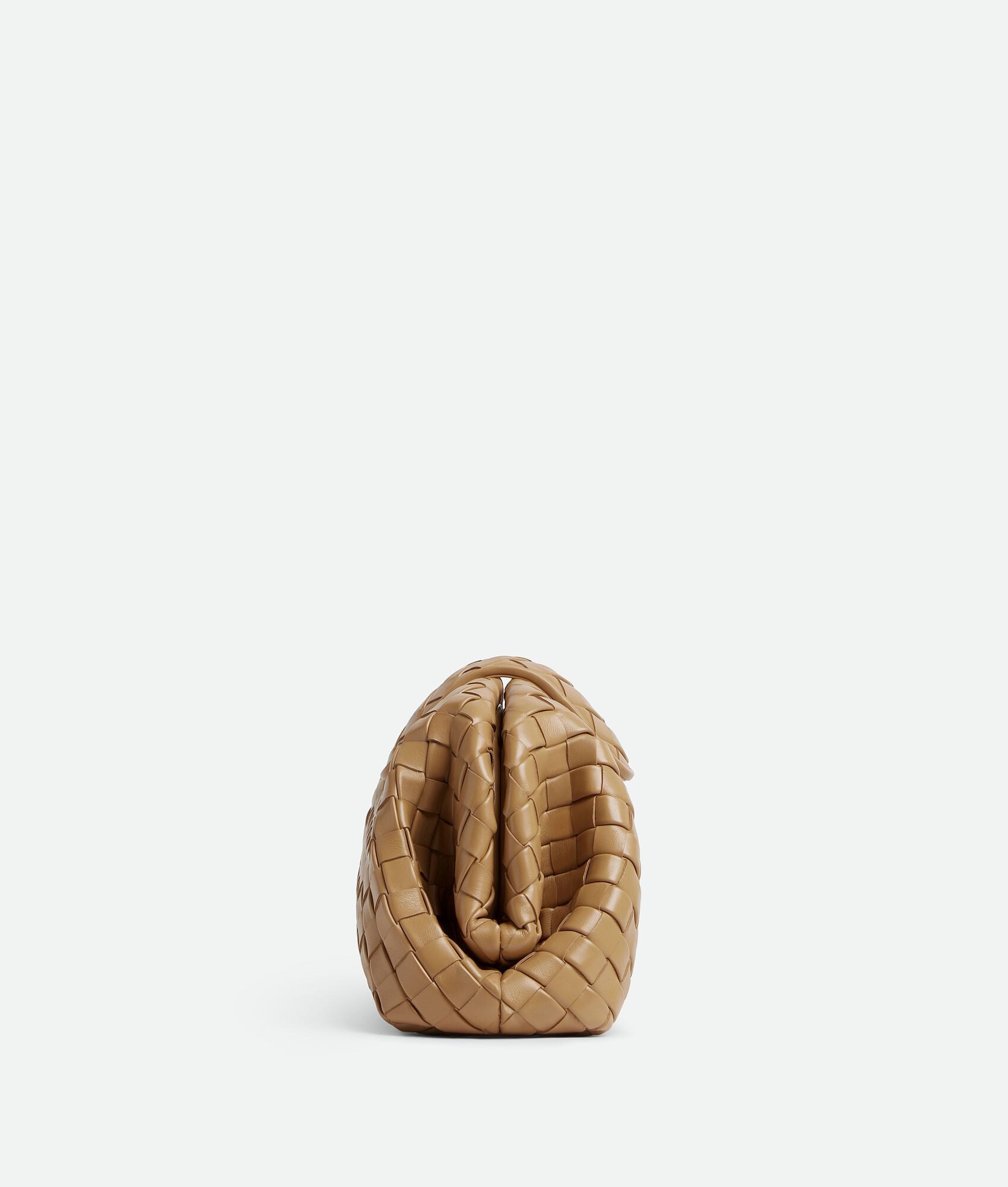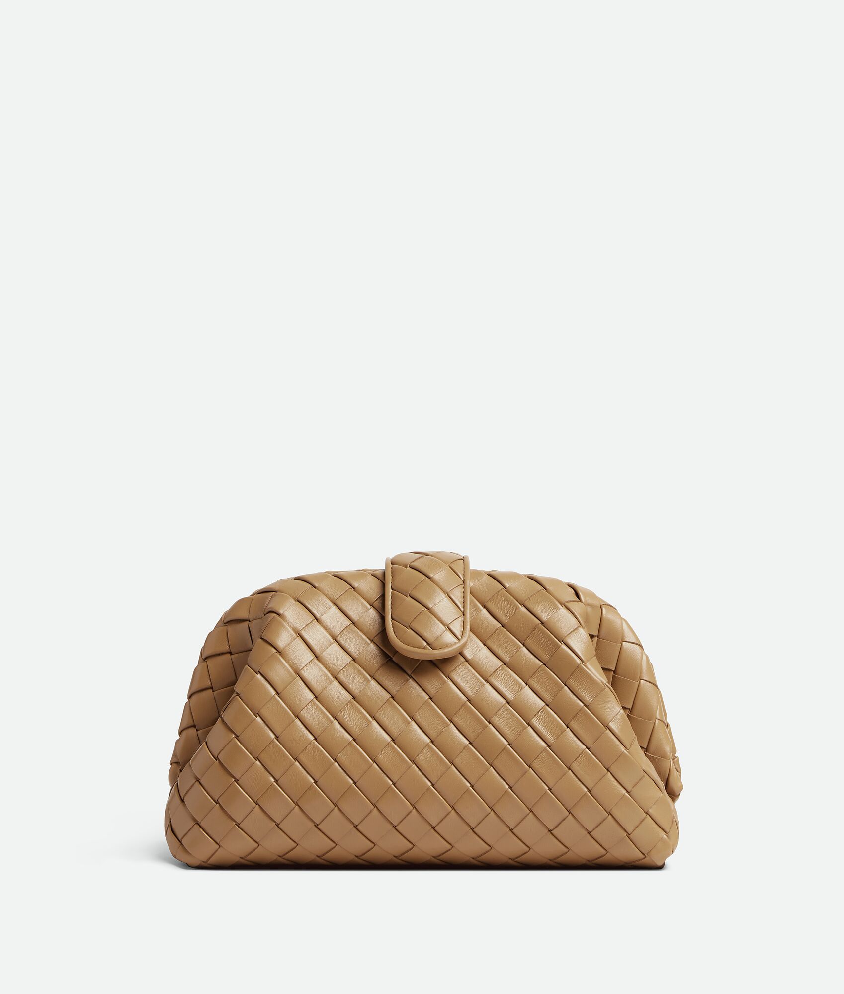 Padded Intrecciato leather teen clutch with leather braided metal chain