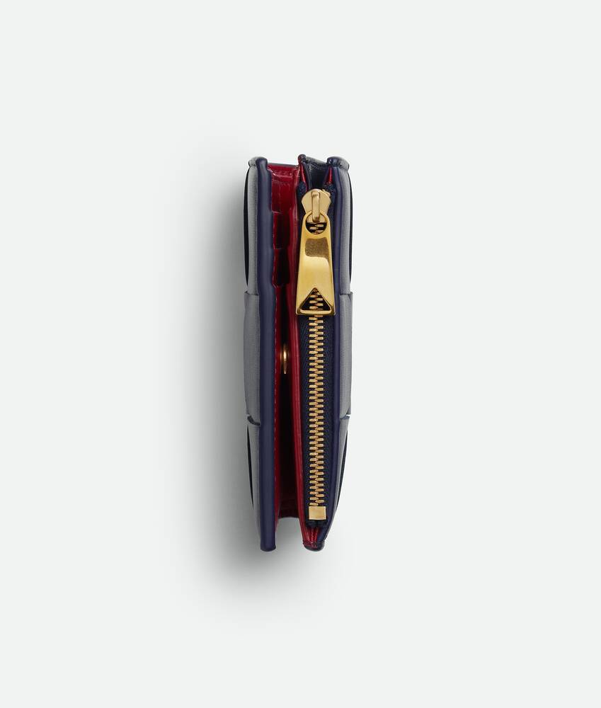 Six card slots, one note compartment, two additional pockets, one zipped coin purse