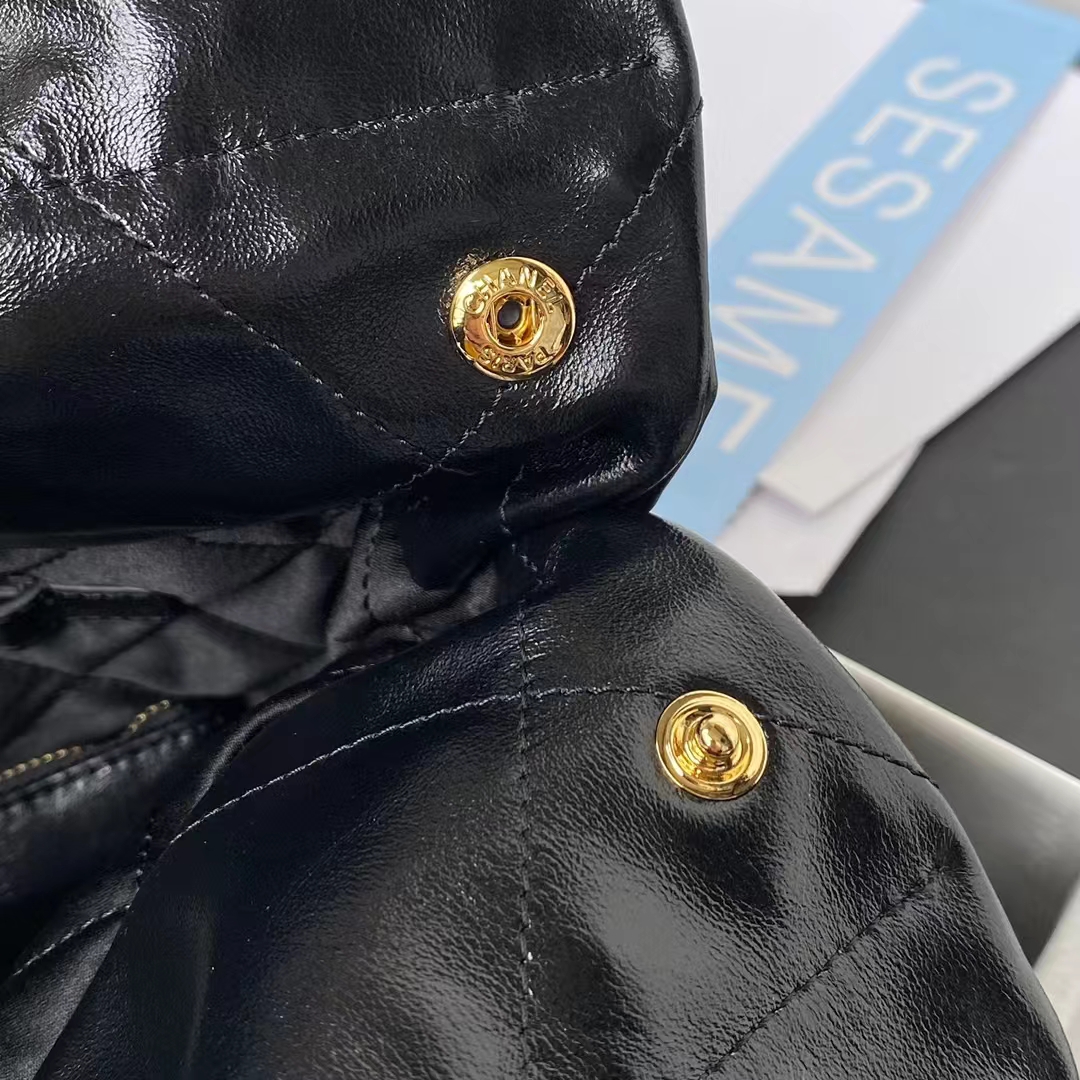 Chanel 22 AS3260 Small Bag Black Shiny Crumpled Calfskin Gold Hardware
