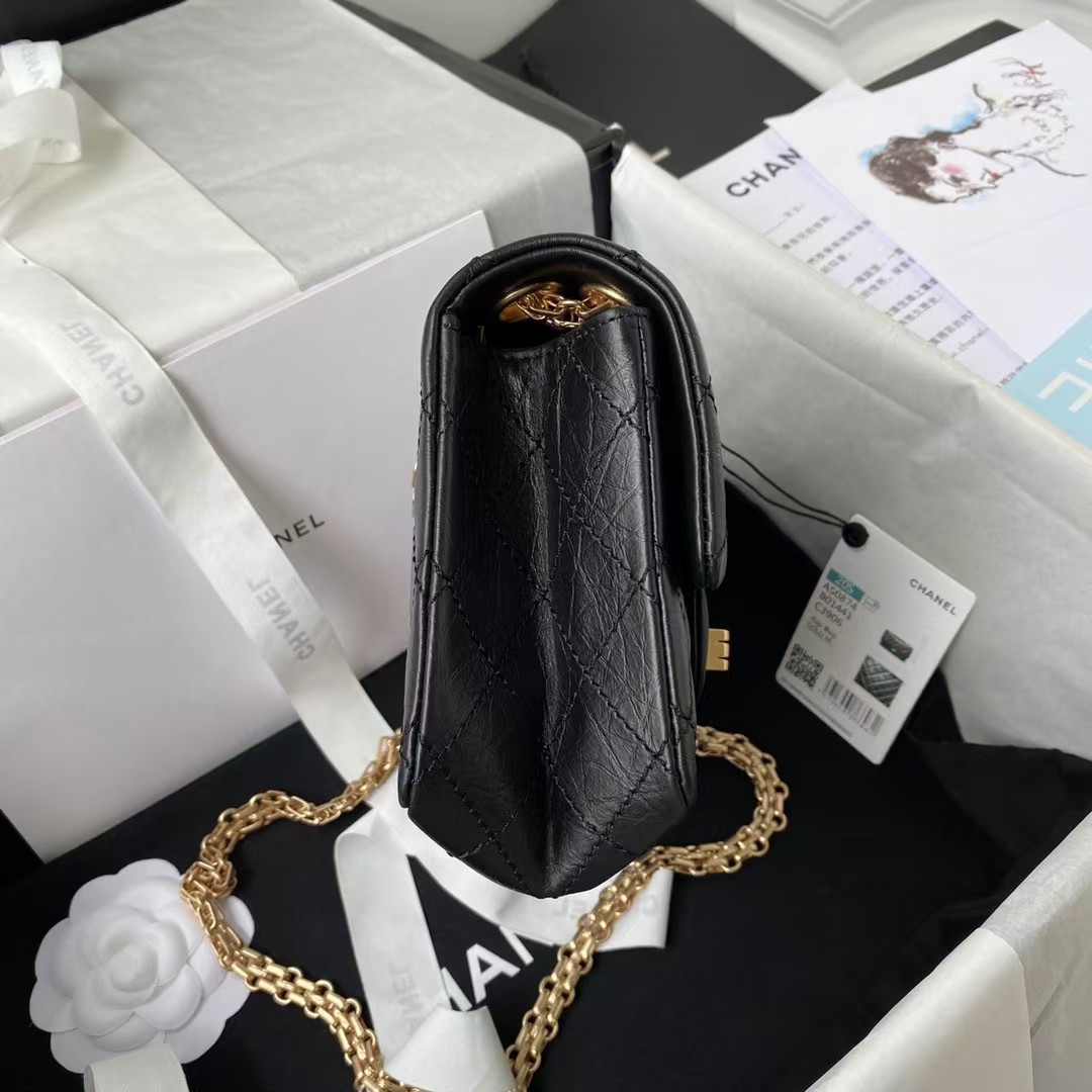 Chanel 23A Classic Mini 2.55 Flap Bag Black Distressed Calfskin Gold Hardware