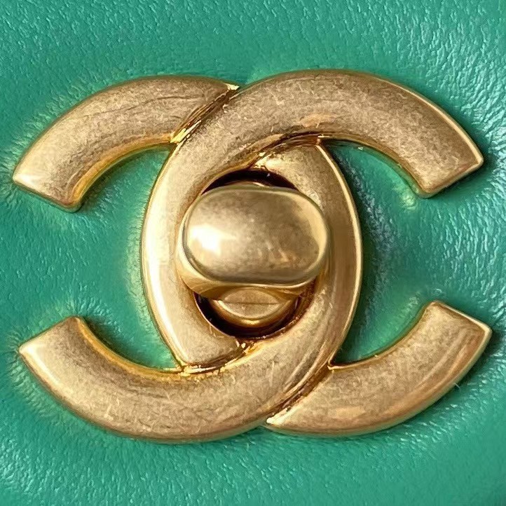 Chanel 23K AS1787 Mini Pearl Embossed Rectangular Flap Bag Lambskin Brushed Metal Hardware Green