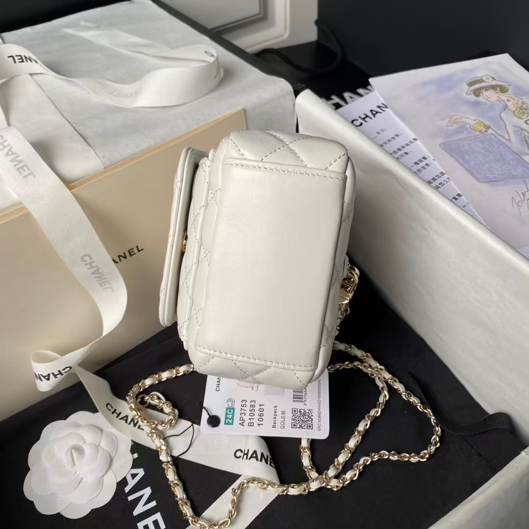 Chanel 24C AP3573 Mini Backpack Lambskin Gold Metal White