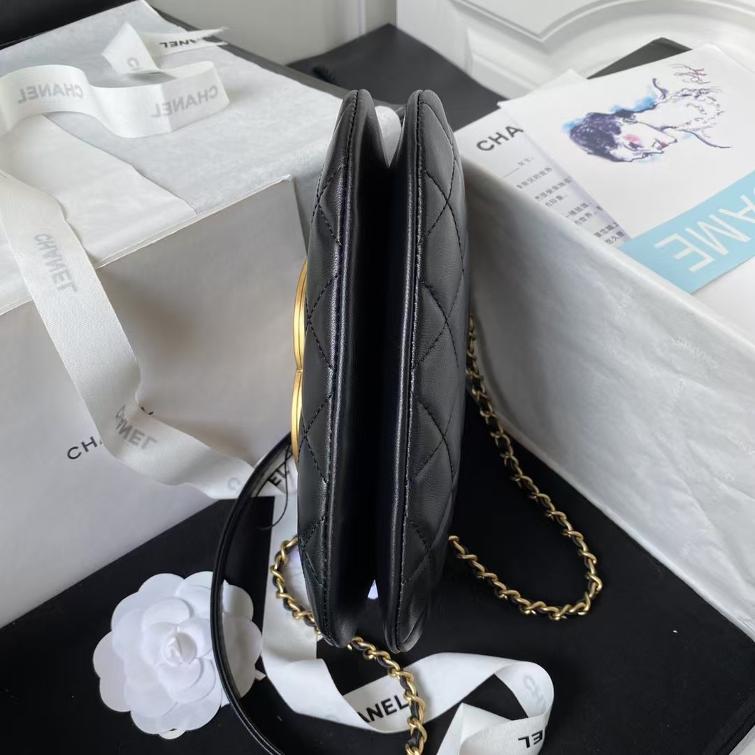 Chanel 24C Vintage Logo Small Quilted Lambskin Shoulder Bag AS4609 Black
