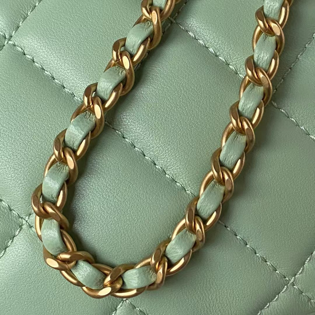 Chanel 24C Vintage Logo Small Quilted Lambskin Shoulder Bag AS4609 Green