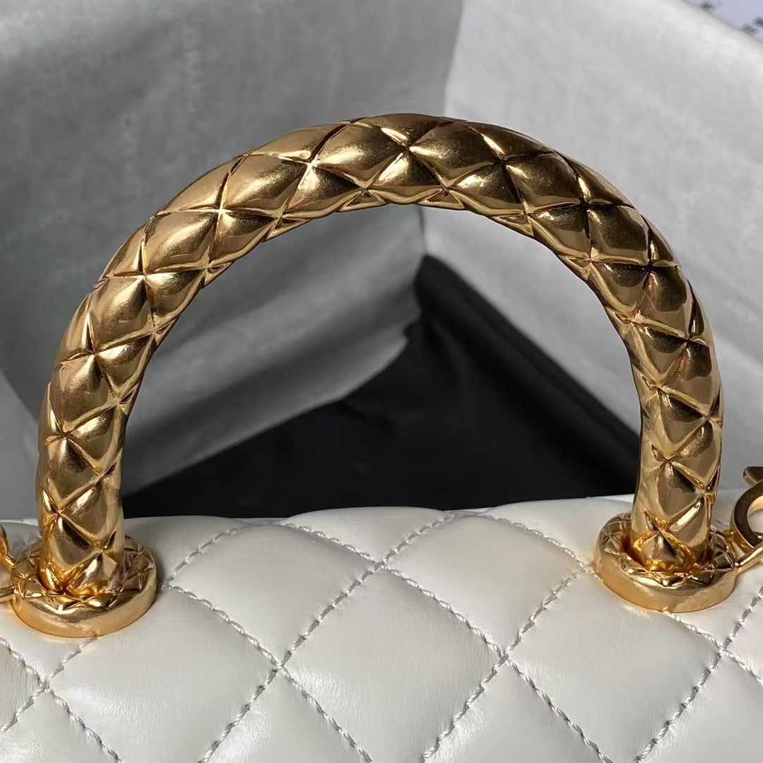 Chanel AS2215 Mini Flap Bag With Metal Top Handle Shiny Calfskin WhiteChanel AS2215 Mini Flap Bag With Metal Top Handle Shiny Calfskin White