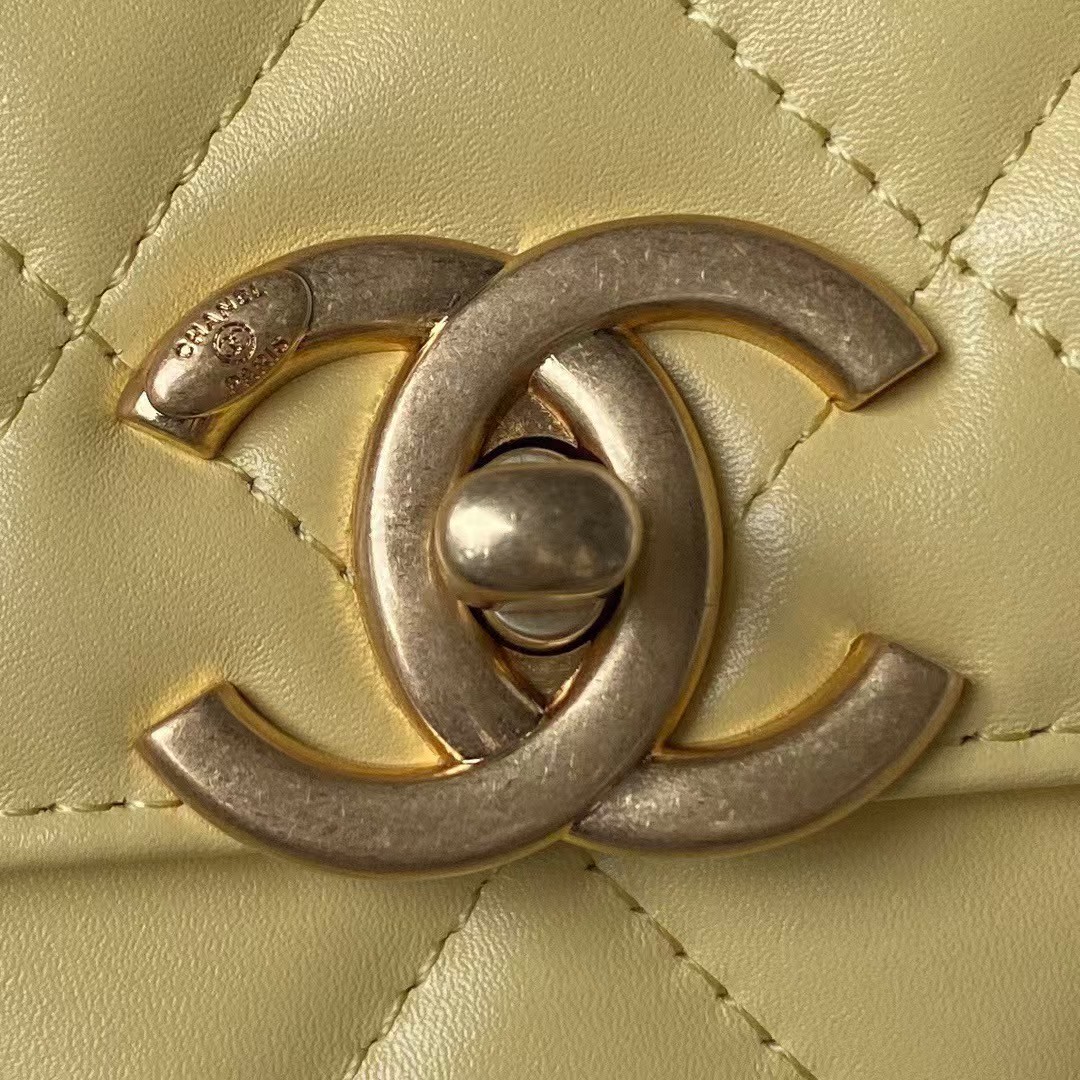 Chanel AS2649 Chain Bag With Gold Charm Small Vintage Calfskin Bag Yellow