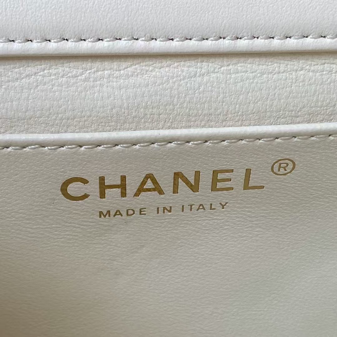 / Chanel AS4385 Mini Flap Bag Pearl Lambskin Faux Pearl & Gold Metal White