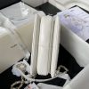 The interior is lined with red leather and features two compartments and a zip pocket with a Chanel zipper pull.