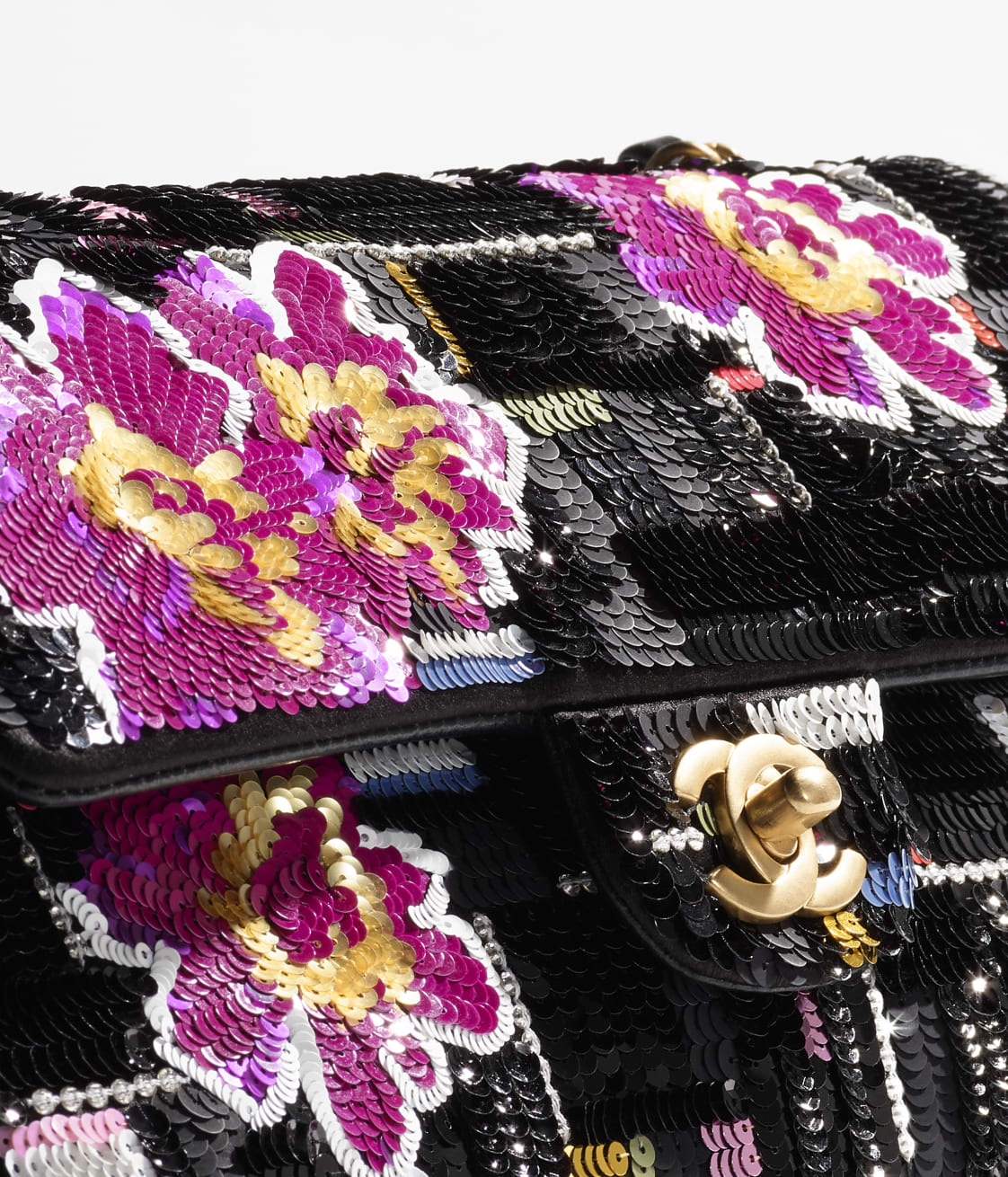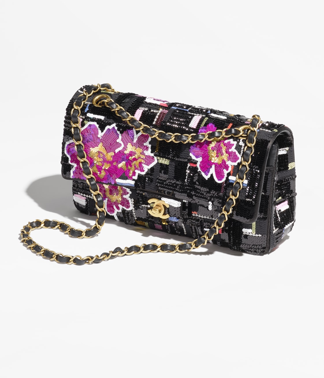 Embroidered Satin, Sequins & Gold-Tone Metal Classic Flap Bag