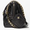 This Chanel Large Boy Bag is crafted in black lambskin with ruthenium hardware and features a full front flap, Le Boy CC snaps and ruthenium-toned chain links, and a black leather padded shoulder/crossbody strap.