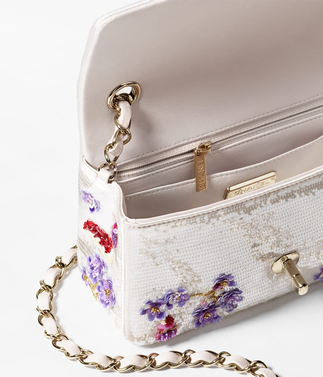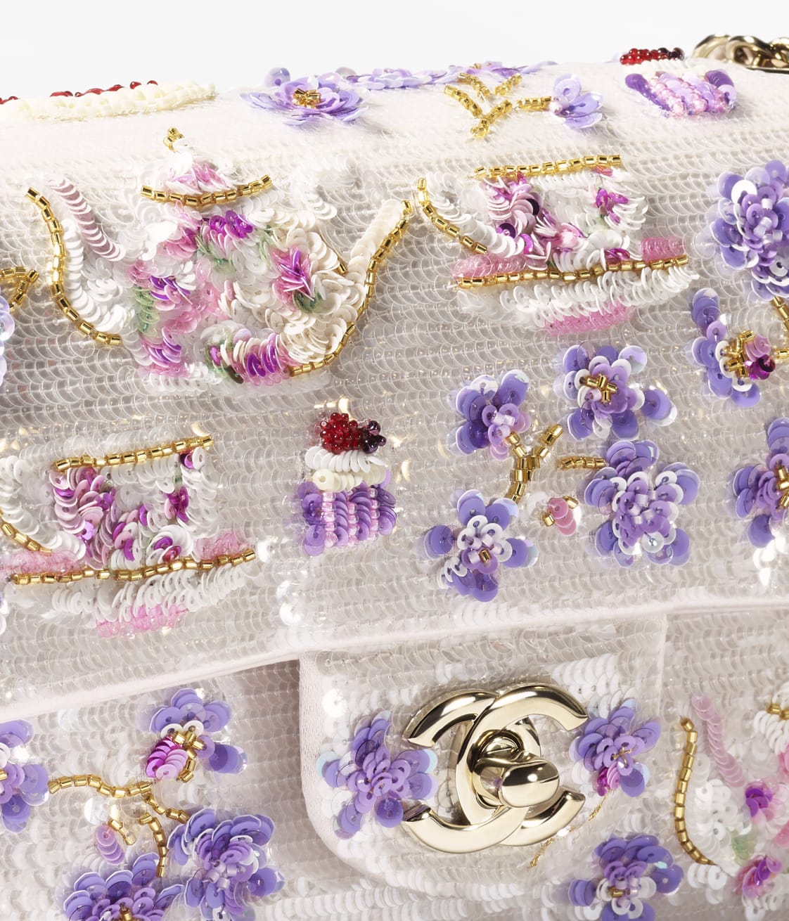 Embroidered Satin, Sequins, Glass Beads, Strass & Gold-Tone MetalWhite, Pink, Purple & Red
