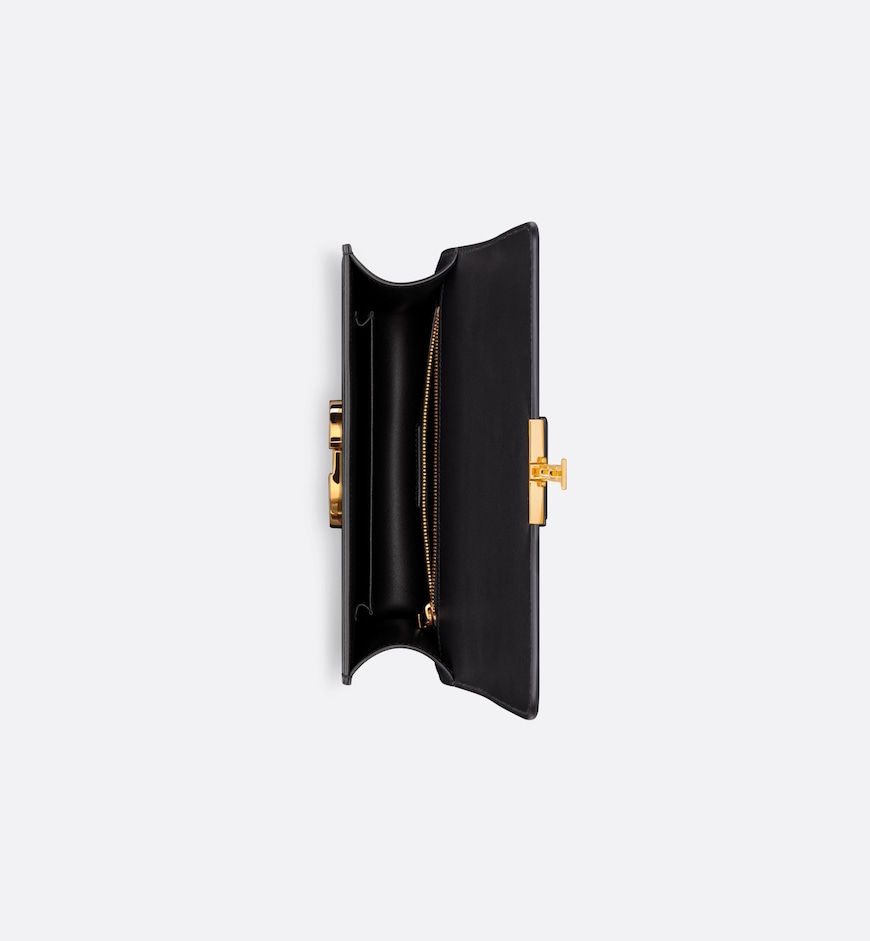 The 30 Montaigne line is inspired by the emblematic address and offers essential pieces that embody the House’s iconic codes. The bag is crafted in black box calfskin for an elegant and modern look. The flap is embellished with an antique gold-finish metal CD clasp, inspired by the seal of a Christian Dior perfume bottle. Refined details such as an embossed 30 Montaigne signature on the back, define this unique design. Featuring an adjustable leather shoulder strap, the 30 Montaigne bag can be carried by hand, worn over the shoulder or crossbody.