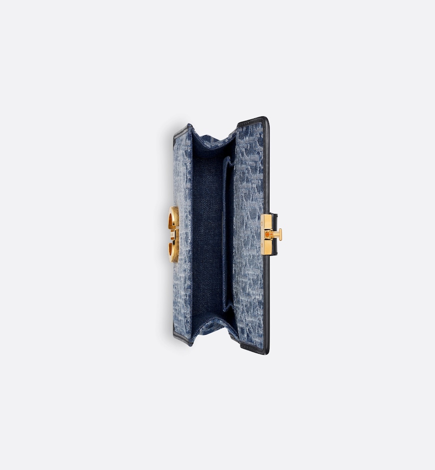 The East-West bag with chain enhances the 30 Montaigne line with a timeless and elegant design. The bag is crafted in blue Denim Dior Oblique jacquard, offering a new take on the iconic House motif with the modern appeal of an irregular stonewashed effect. The flap has an antique gold-finish metal CD clasp, inspired by the seal of a Christian Dior perfume bottle. Other details, like the embossed 30 Montaigne signature on the back, highlight the streamlined style. The bag features a removable chain strap with a leather insert that allows it to be comfortably carried by hand, worn over the shoulder or crossbody.