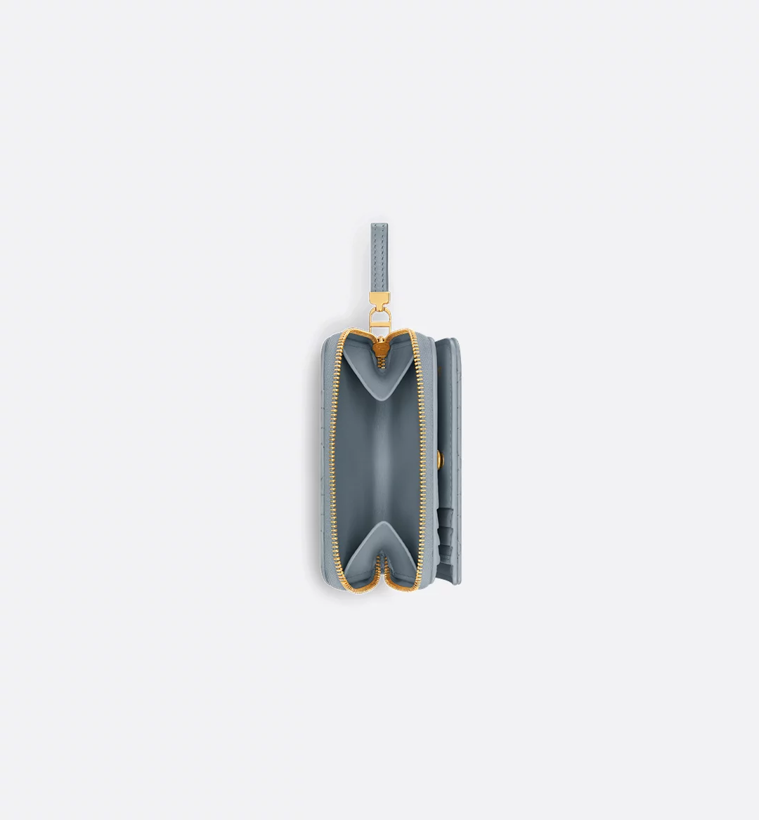 The Dior Caro Scarlet wallet features an elegant CD signature on its flap and hallmark Cannage topstitching. Crafted in cloud blue supple calfskin, the lightweight and practical daily essential can be combined with other pieces from the Dior Caro line and may be slipped into any bag.