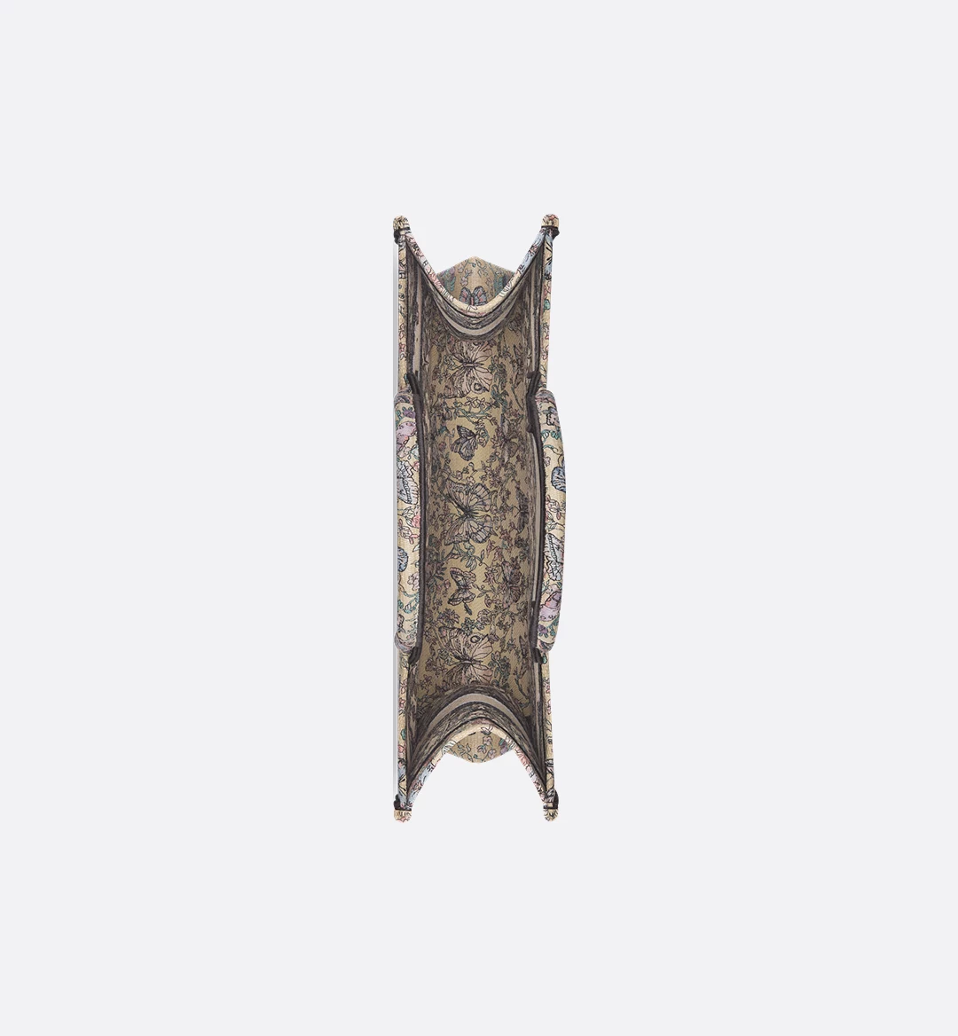 Introduced by Maria Grazia Chiuri, Creative Director of Christian Dior, the Dior Book Tote has become a staple of the Dior aesthetic. Created to hold all the daily essentials, the raffia style is embroidered with Pietro Ruffo’s blue Toile de Jouy Papillon motif, showcasing delicate butterflies in an elegant and dreamlike floral setting. Adorned with the Christian Dior Paris signature on the front, the large tote exemplifies the House’s savoir-faire and may be carried by hand or worn over the shoulder.
