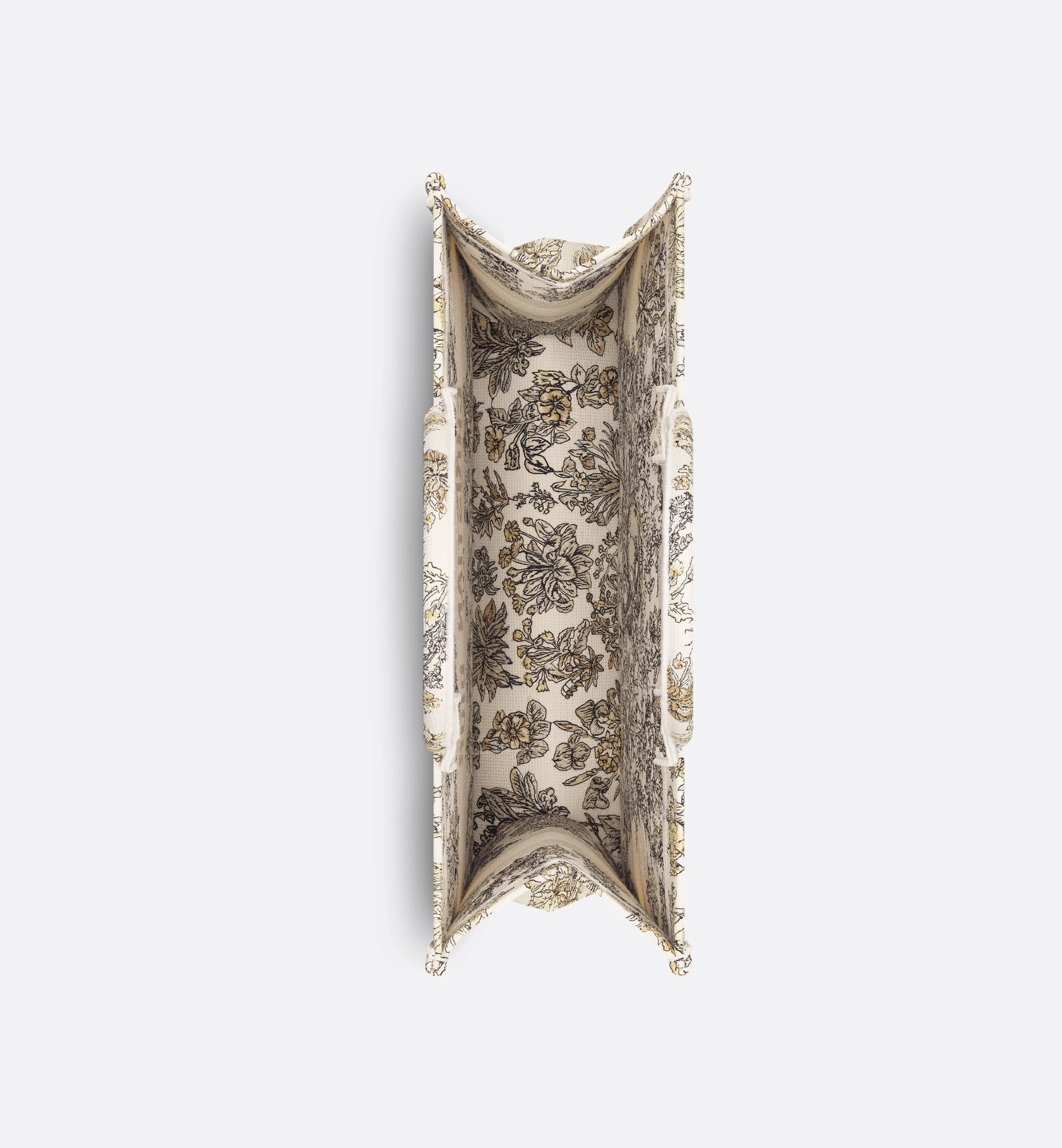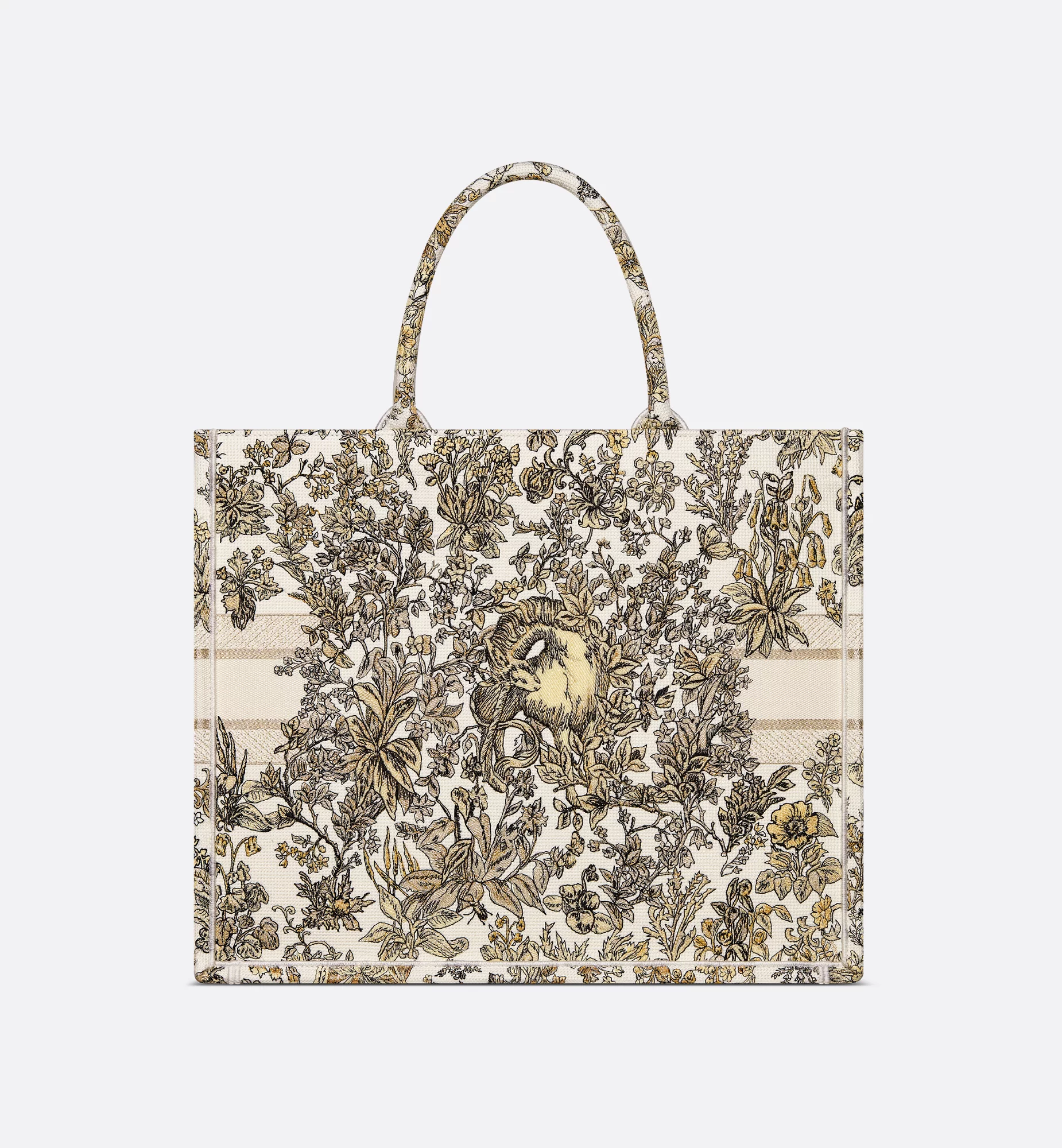 Introduced by Maria Grazia Chiuri, Creative Director of Christian Dior, the Dior Book Tote has become a staple of the Dior aesthetic. Created to hold all the daily essentials, the latte style is fully embroidered with the gold-tone Millefiori Unicorn motif by Pietro Ruffo, showcasing a symbol from Scottish mythology, the unicorn, within a poetic floral pattern. Adorned with the Christian Dior Paris signature on the front, the large tote exemplifies the House’s savoir-faire and can be carried by hand or worn over the shoulder. The bag can be coordinated with the season’s other Millefiori Unicorn creations.