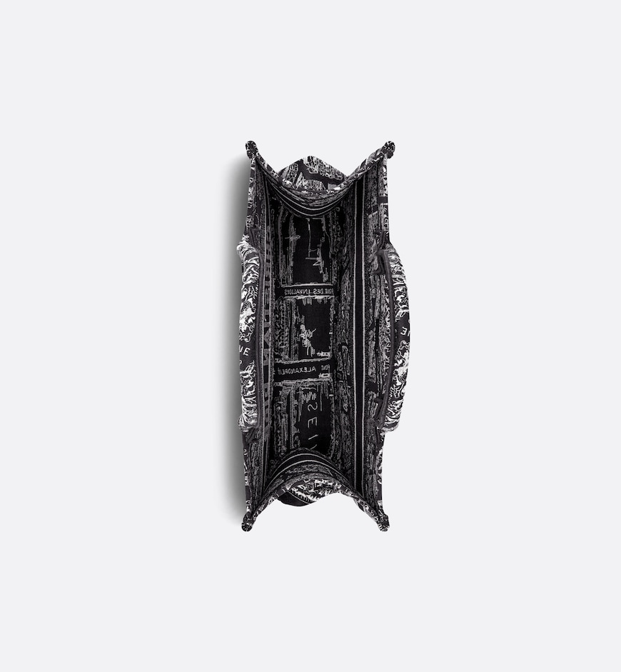 Introduced by Maria Grazia Chiuri, Creative Director of Christian Dior, the Dior Book Tote has become a staple of the Dior aesthetic. Designed to hold all the daily essentials, the style is fully embroidered with the season’s signature black and white Plan de Paris motif, inspired by the House archives and centered around Dior’s historic address on Avenue Montaigne. Adorned with the Christian Dior Paris signature on the front, the medium tote exemplifies the House’s signature savoir-faire and may be carried by hand or worn over the shoulder.