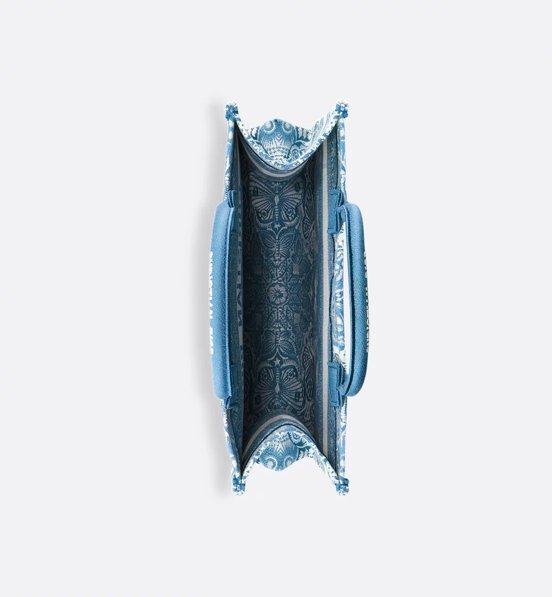 Introduced by Maria Grazia Chiuri, Creative Director of Christian Dior, the Dior Book Tote has become a staple of the Dior aesthetic. Designed to hold all the daily essentials, the style is fully embroidered with the celestial blue and white D-Butterfly Paisley motif, offering a modern and graphic take on the butterfly theme. Adorned with the Christian Dior Paris signature on the front, the medium tote exemplifies the House’s savoir-faire and may be carried by hand or worn over the shoulder.