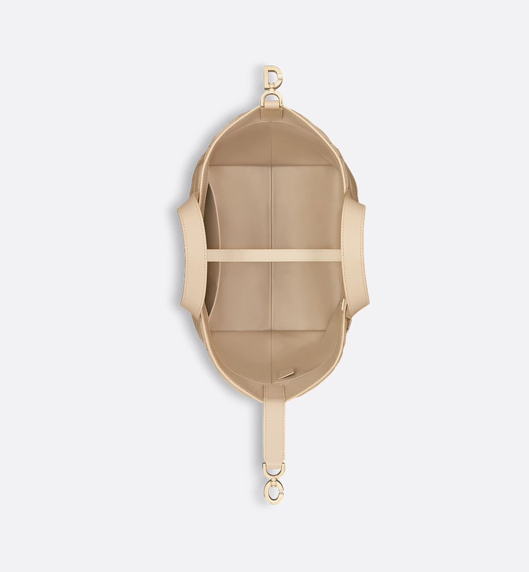 The Dior Toujours vertical tote bag is distinguished by a modern and practical design. Crafted in powder beige calfskin with Macrocannage topstitching, it has a spacious interior compartment to accommodate all the essentials. Its thin leather strap closure keeps items secure, while the D of the CD Lock clasp twists to adjust the sides and enhance the bag’s silhouette. The leather top handles are completed by a removable leather strap, allowing the medium bag to be carried by hand, worn over the shoulder or crossbody.