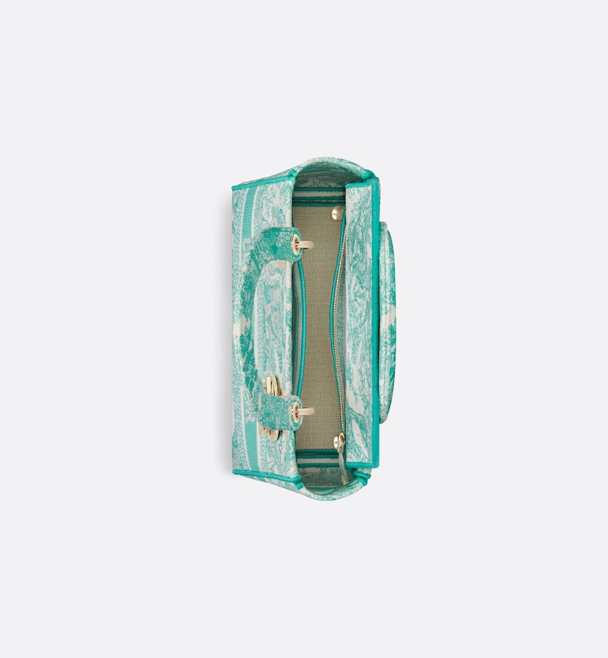 Part of the Dioriviera capsule, the Lady D-Lite bag combines classic elegance with House modernity. The style is fully embroidered with the Toile de Jouy motif in aquamarina. The front features a Christian Dior Paris signature while the thick pale gold-finish metal D.I.O.R. charms enhance and illuminate the silhouette. Equipped with a wide, reversible and removable embroidered shoulder strap, the medium Lady D-Lite bag can be carried by hand or worn crossbody.