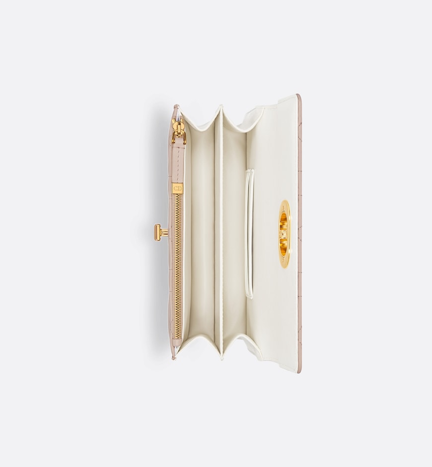 The Miss Caro mini bag enhances the Dior Caro line with modern and timeless elegance. Crafted in two-tone trench beige lambskin, it stands out with the unique quilted effect of Macrocannage stitching and a latte interior. The flap is accented by an antique gold-finish metal CD twist clasp inspired by the seal of a Christian Dior perfume bottle. Alternating between antique gold-finish metal links and trench beige enamel links, the adjustable chain shoulder strap has a latte leather insert for added comfort when carrying the bag by hand, wearing it over the shoulder or crossbody.