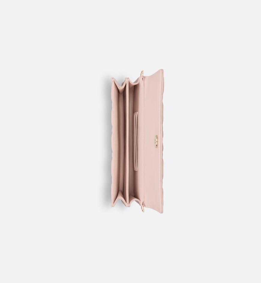 The My Dior mini bag expands the line with an elegant and functional design. Crafted in powder pink Cannage lambskin, it features a flap enhanced by D.I.O.R. charms on the front. Equipped with compartments and card slots, the functional accessory will hold any essentials and is the ideal day and evening companion. A top handle completed by a removable chain punctuated with resin pearls allows the bag to be carried by hand or worn crossbody.