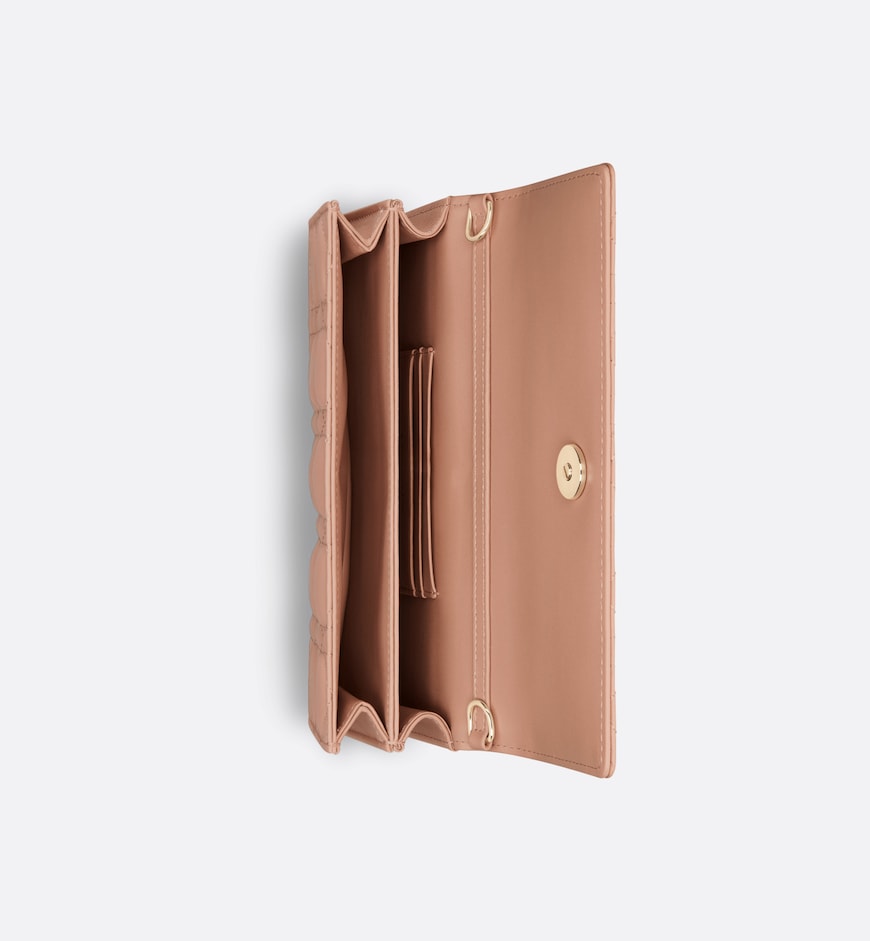 The My Dior mini bag expands the line with an elegant and functional design. Crafted in Rose des Vents Cannage lambskin, it features a flap enhanced by D.I.O.R. charms on the front. Equipped with compartments and card slots, the functional accessory holds all the essentials and is the ideal day and evening companion. A top handle completed by a removable chain with resin pearls allows the bag to be carried by hand or worn crossbody.