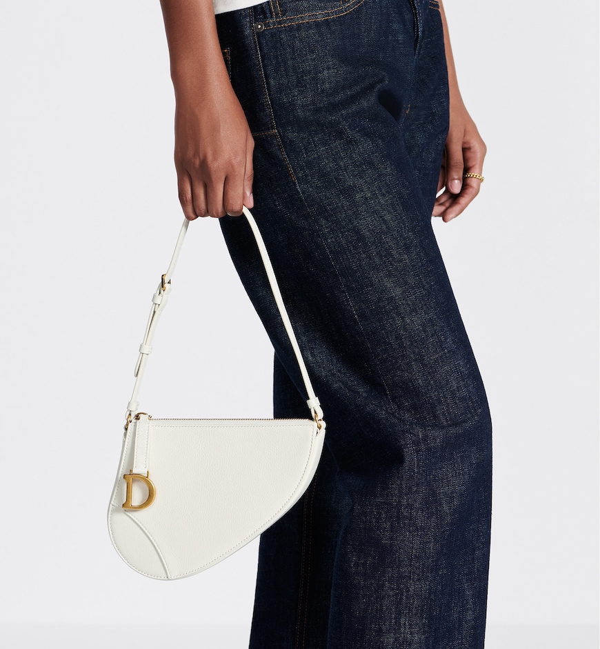 The Saddle Rodeo pouch reimagines the namesake line’s hallmark codes, including the antique gold-finish metal D stirrup. Crafted in latte goatskin, it features a compact design and a compartment to hold all the essentials with one slip pocket and three card slots. Equipped with an adjustable leather strap, the pouch can be worn over the shoulder for daytime or evening.