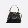 The Dior Jolie Top Handle bag presents an elegant and functional design. The style is crafted in pistachio green calfskin with Cannage stitching. Its double flap, enhanced by a CD signature with a white varnished aluminum pearl, opens to reveal three compartments and a zip pocket to accommodate all the essentials, day or evening. The removable top handle is completed by a detachable chain strap with a leather insert and CD signature links accented by white resin pearls, allowing the small bag to be comfortably carried by hand, worn over the shoulder or crossbody.