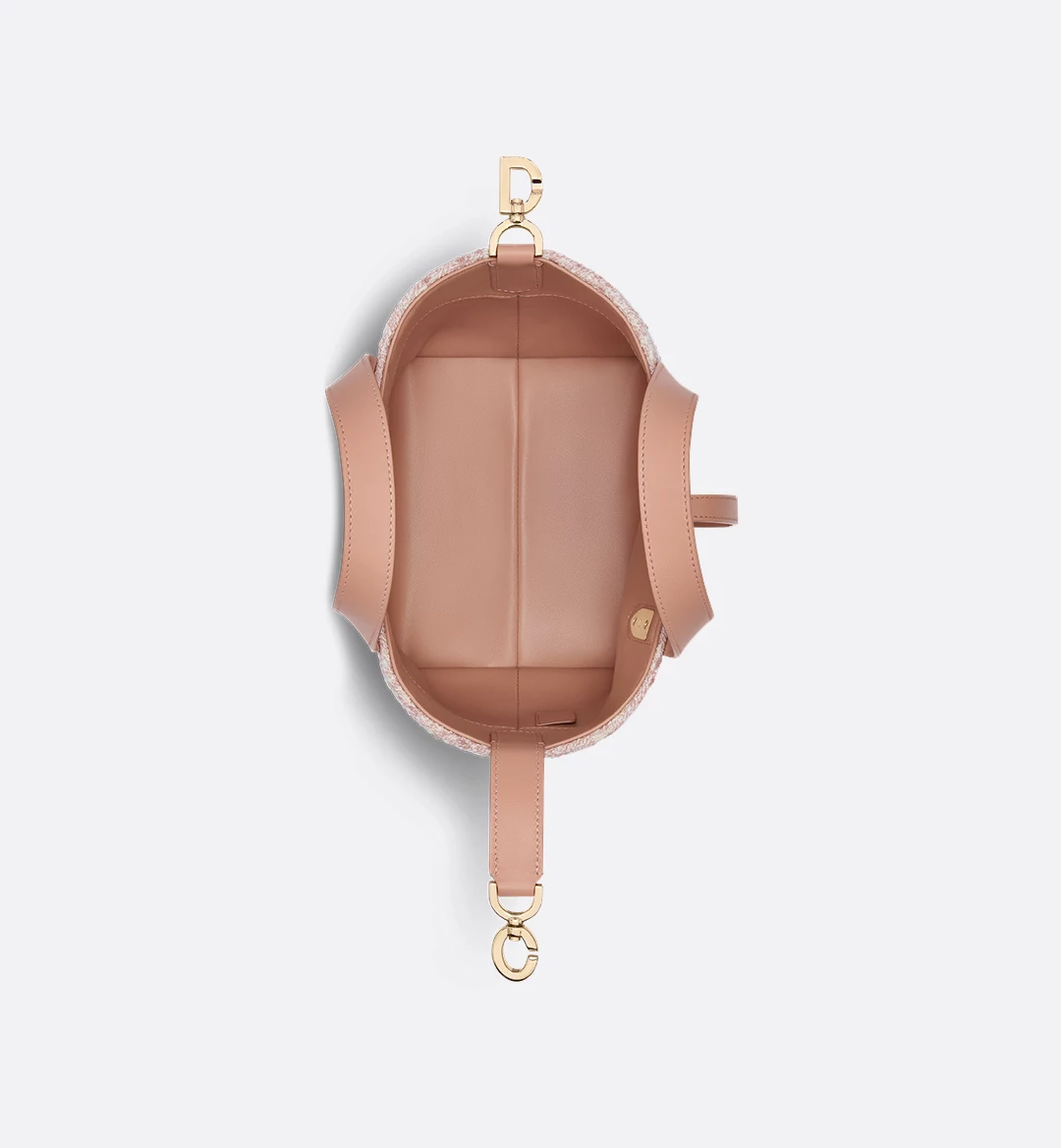 The Dior Toujours vertical tote bag is distinguished by a modern and practical design. Crafted in Rose des Vents tweed with a white Cannage motif, it has a spacious interior compartment to accommodate all the essentials. Its thin leather strap closure keeps items secure, while the D of the CD Lock clasp twists to adjust the sides and enhance the bag’s silhouette. The leather top handles are completed by a removable leather strap, allowing the small bag to be carried by hand, worn over the shoulder or crossbody.