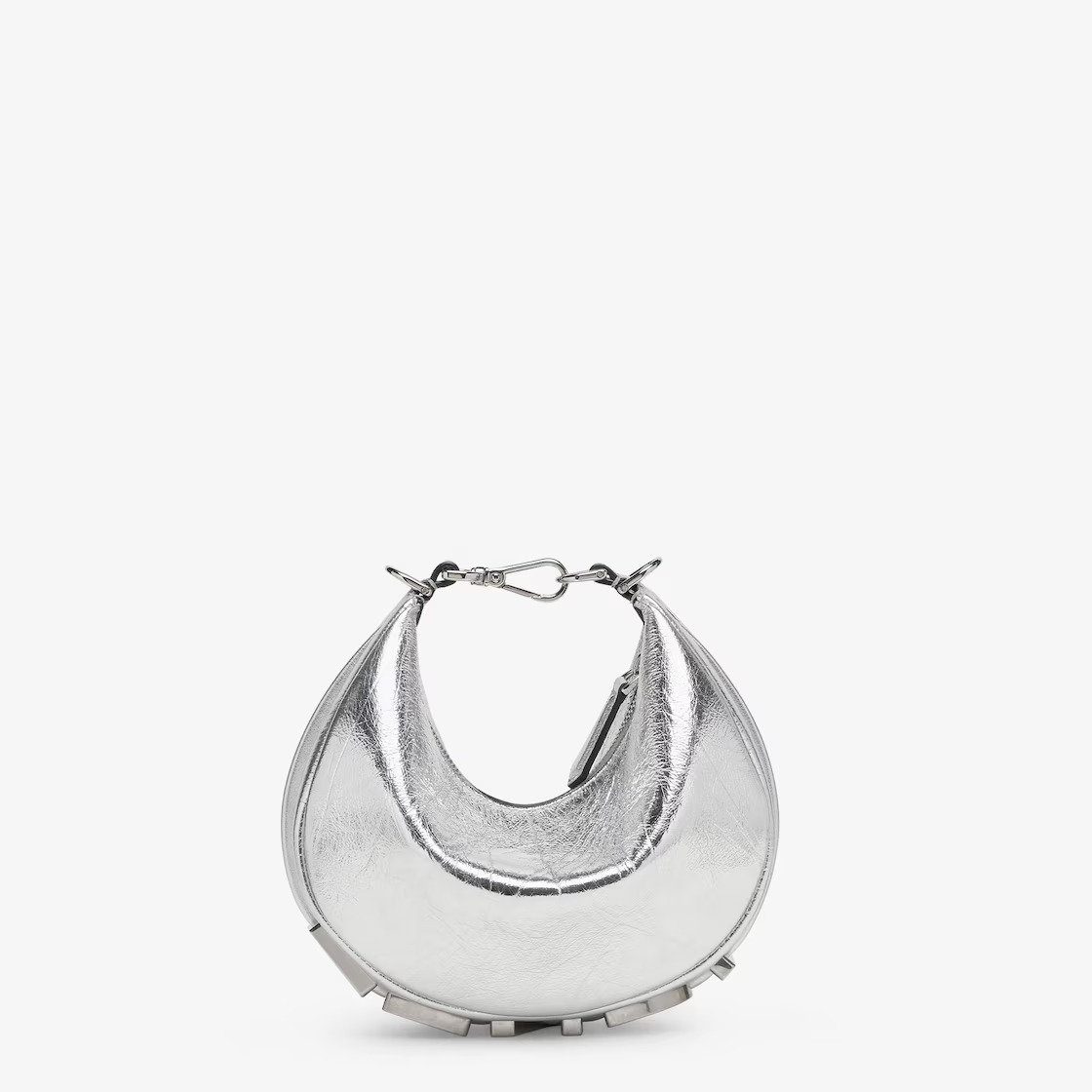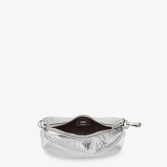 Mini hobo bag made of silver laminated leather with a craquelé effect, embellished with vintage-look palladium metal FENDI lettering.