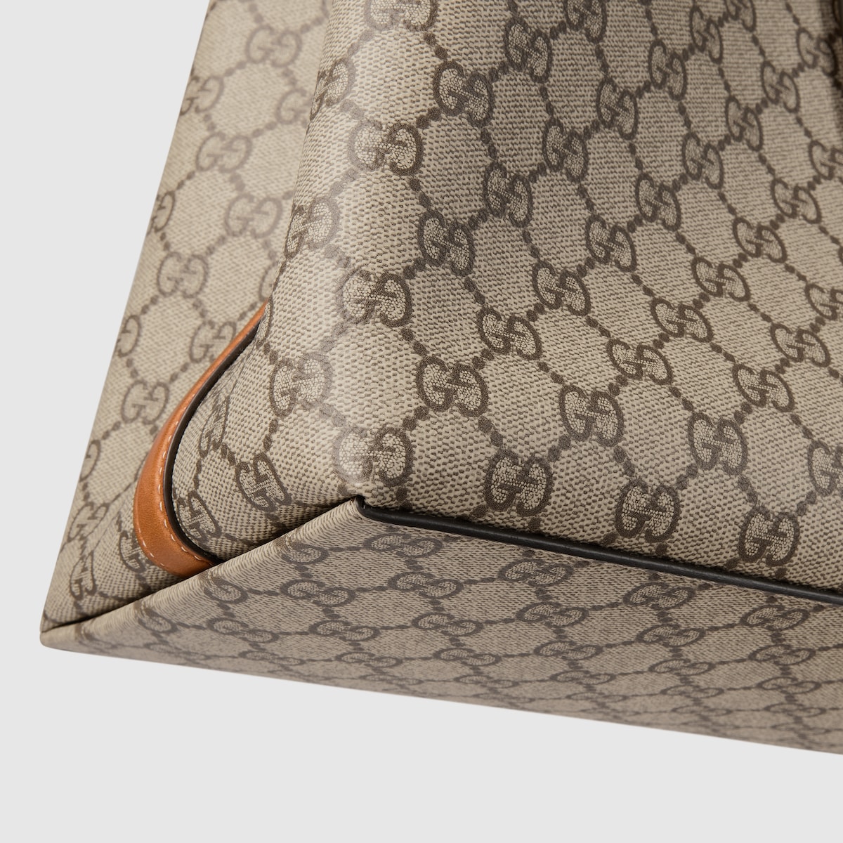 The new GG Emblem collection reinterprets the House??s history of elegance and craftsmanship. This large tote bag features numbered notches on the adjustable top handles, inspired by the equestrian world.