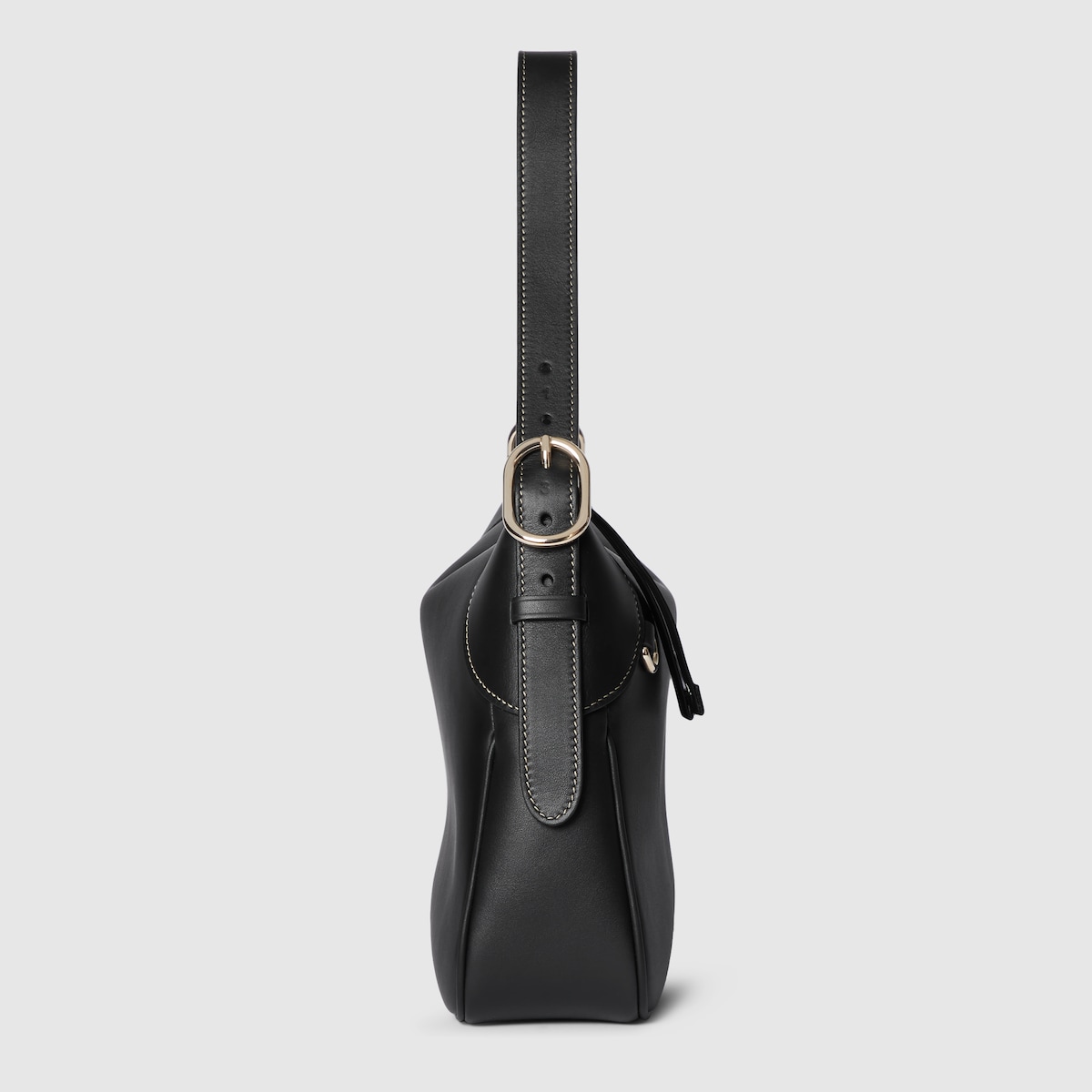 The new GG Emblem collection reinterprets the House??s history of elegance and craftsmanship. This medium shoulder bag features an additional D-ring for detachable items.