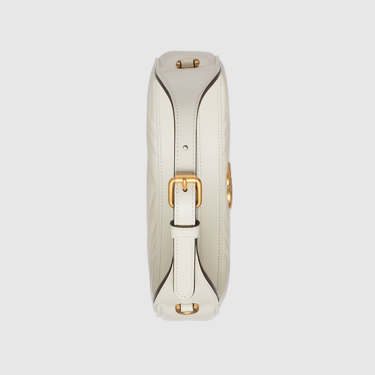With a crescent silhouette and textured white leather, this mini bag has a defined retro feel. Each collection is a journey through different decades and eras, combining vintage elements with archival codes or contemporary details to create new designs that exist outside of space and time. The petite accessory reflects this fascination with the past, a concept that runs throughout the world of GG Marmont.