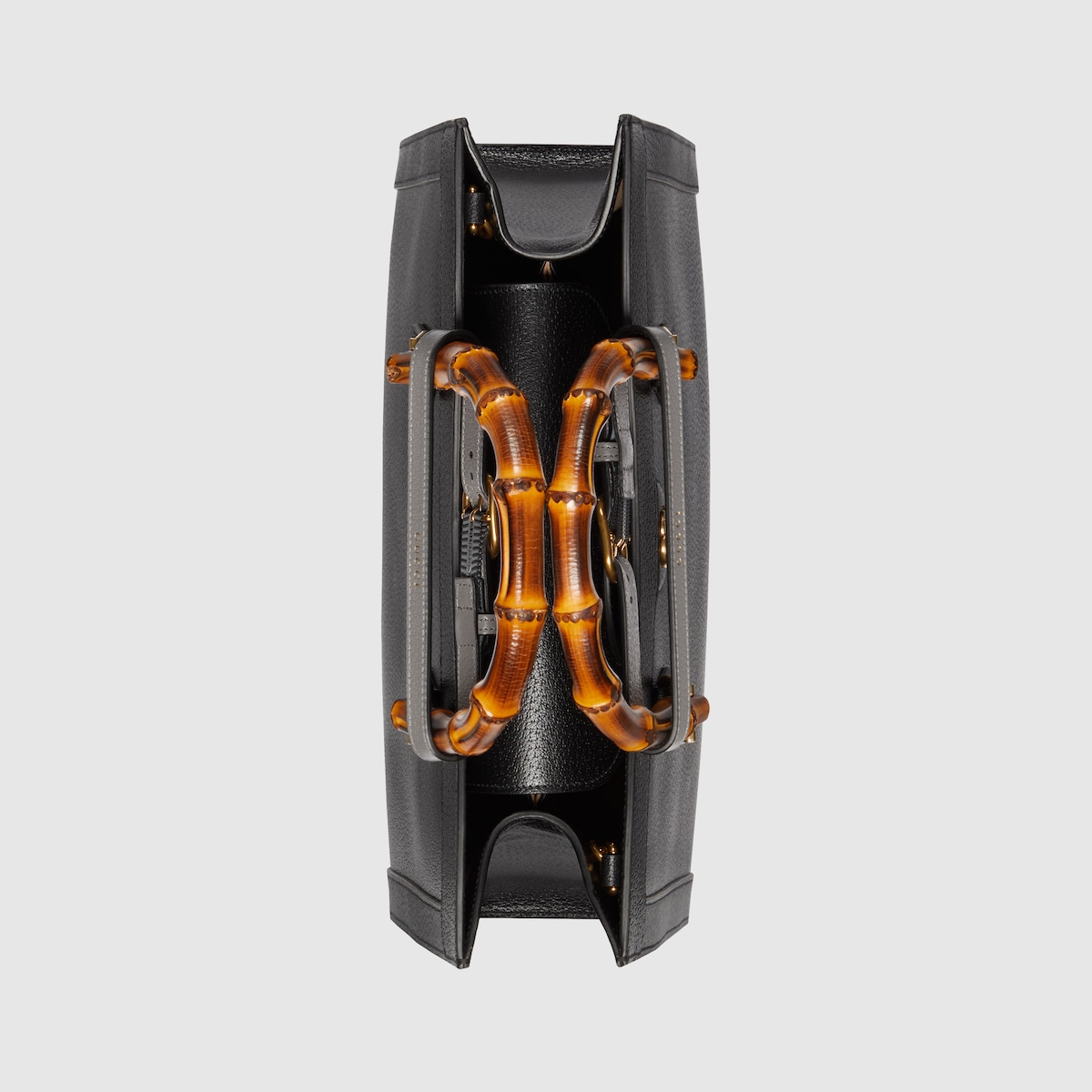 First used in the post-war era when traditional materials were hard to come by, bamboo has become not only a symbol of the spirit of reinvention that runs throughout the House’s designs but one of Gucci’s most recognizable signatures. The Gucci Diana embodies this idea, representing the notion of style in constant evolution with its removable leather belts??a nod to the functional bands used to keep the handles in shape. Here, the bag is presented in black leather.