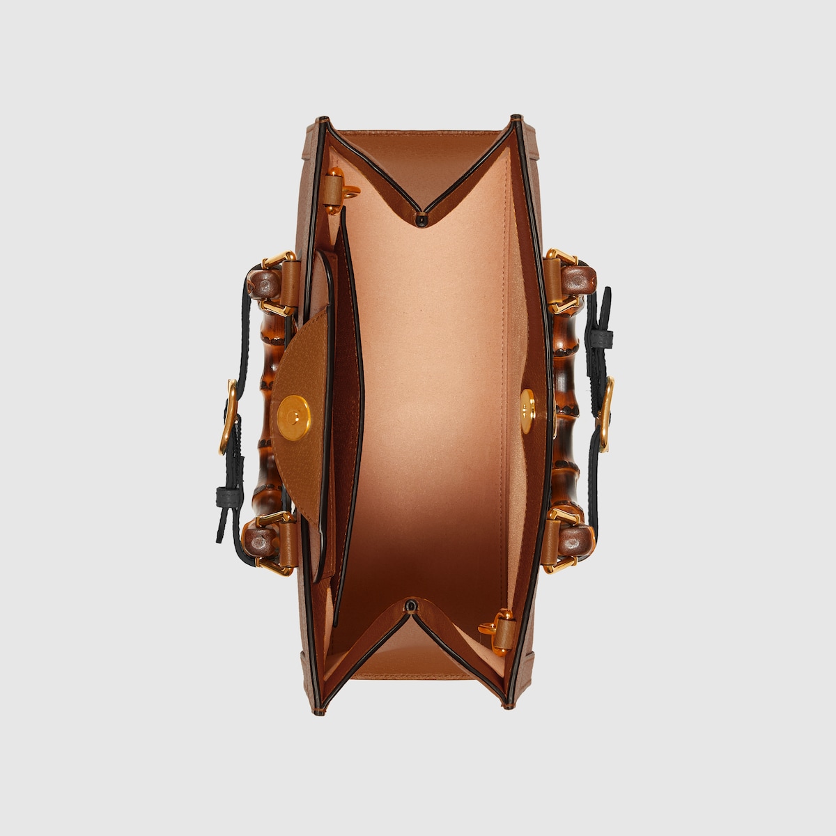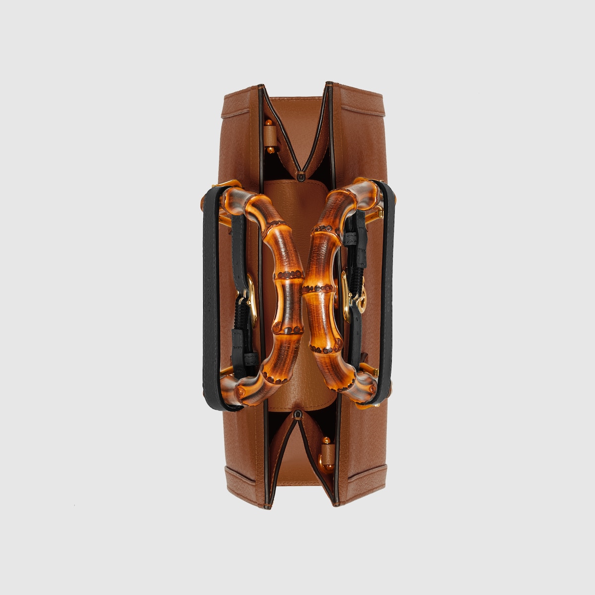The concept of reinvention continues to shape the House’s designs. An evolution of a bamboo handle tote first introduced in 1991, the Gucci Diana represents the notion of style in constant evolution. The design plays with traditional details and renews them new meaning. Playing with this idea, the functional bands used to keep bamboo handles in shape are reimagined as playful leather belts. Here, the tote is introduced in cuir leather.