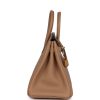This Birkin is in Chai Matte Alligator Mississippiensis leather with palladium hardware, tonal stitching, front flap with two straps, front toggle closure, clochette with lock and two keys, and double rolled handles.